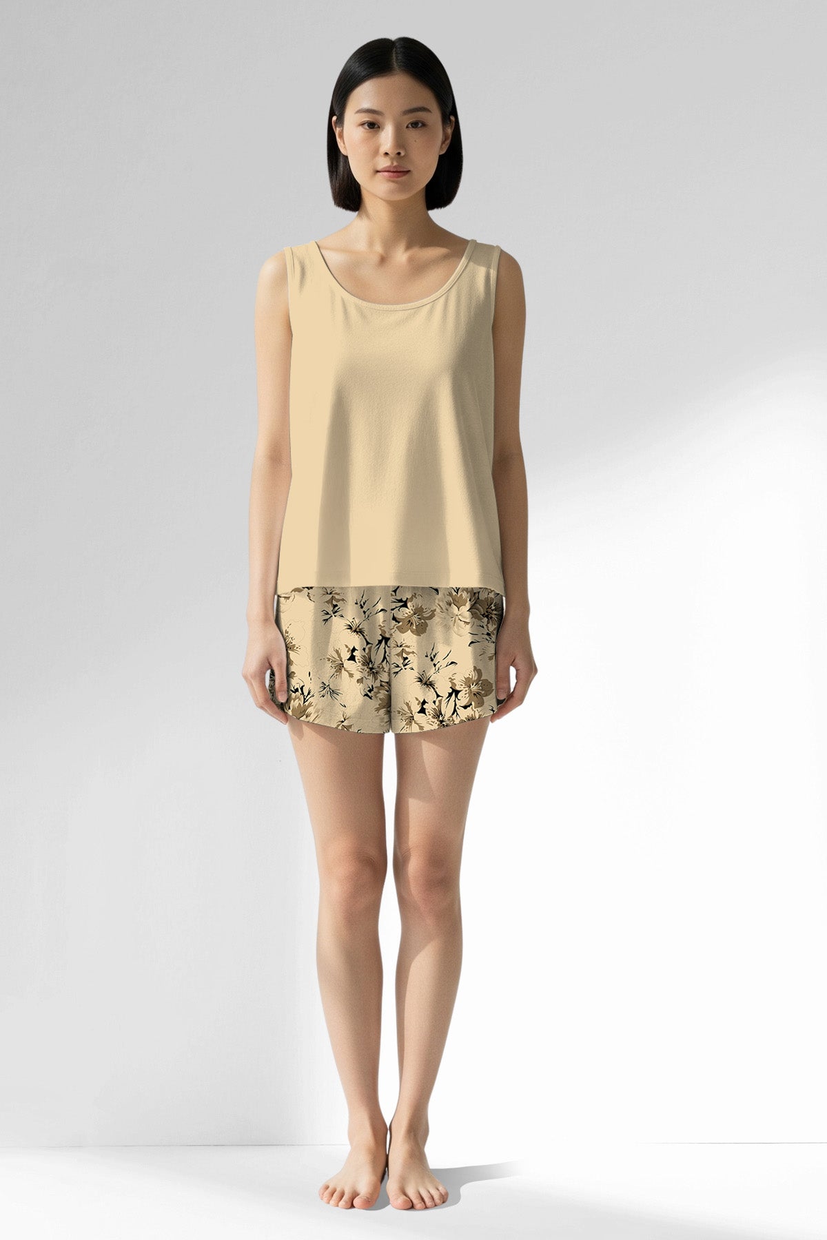 Woman Polyviscon Fleuron Thick Strap Sleeveless Short Set