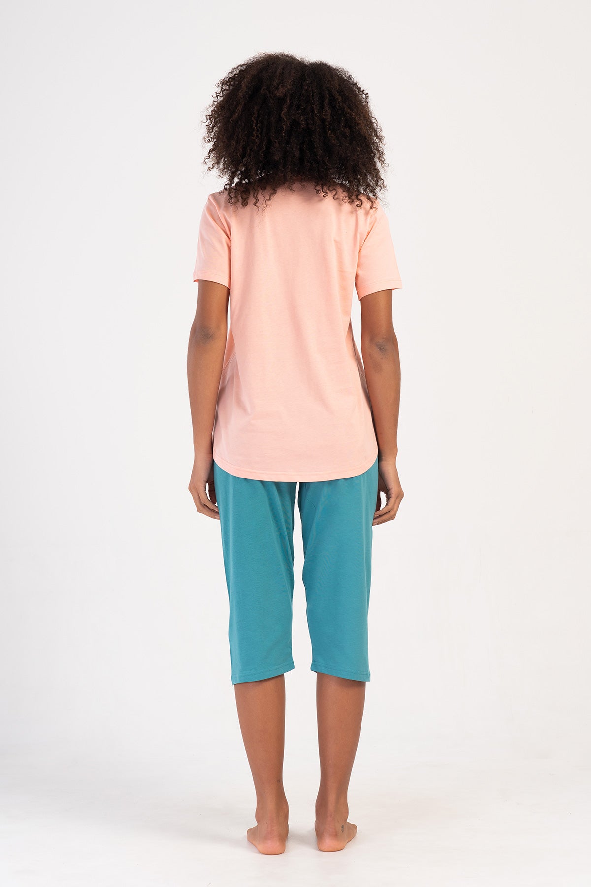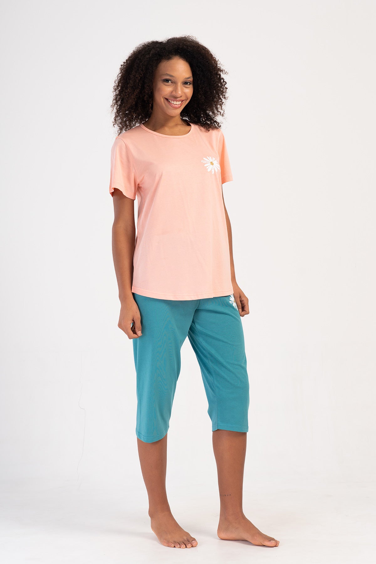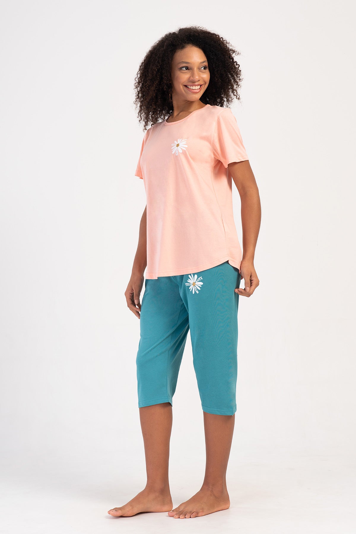 Woman Supreme Big Size Tevia O Neck Short Sleeve Capri Set
