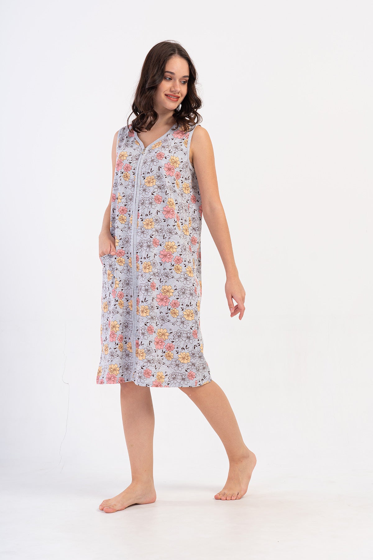 Woman Supreme Voba Sleeveless Zipper and Pocket Detail Home Dress