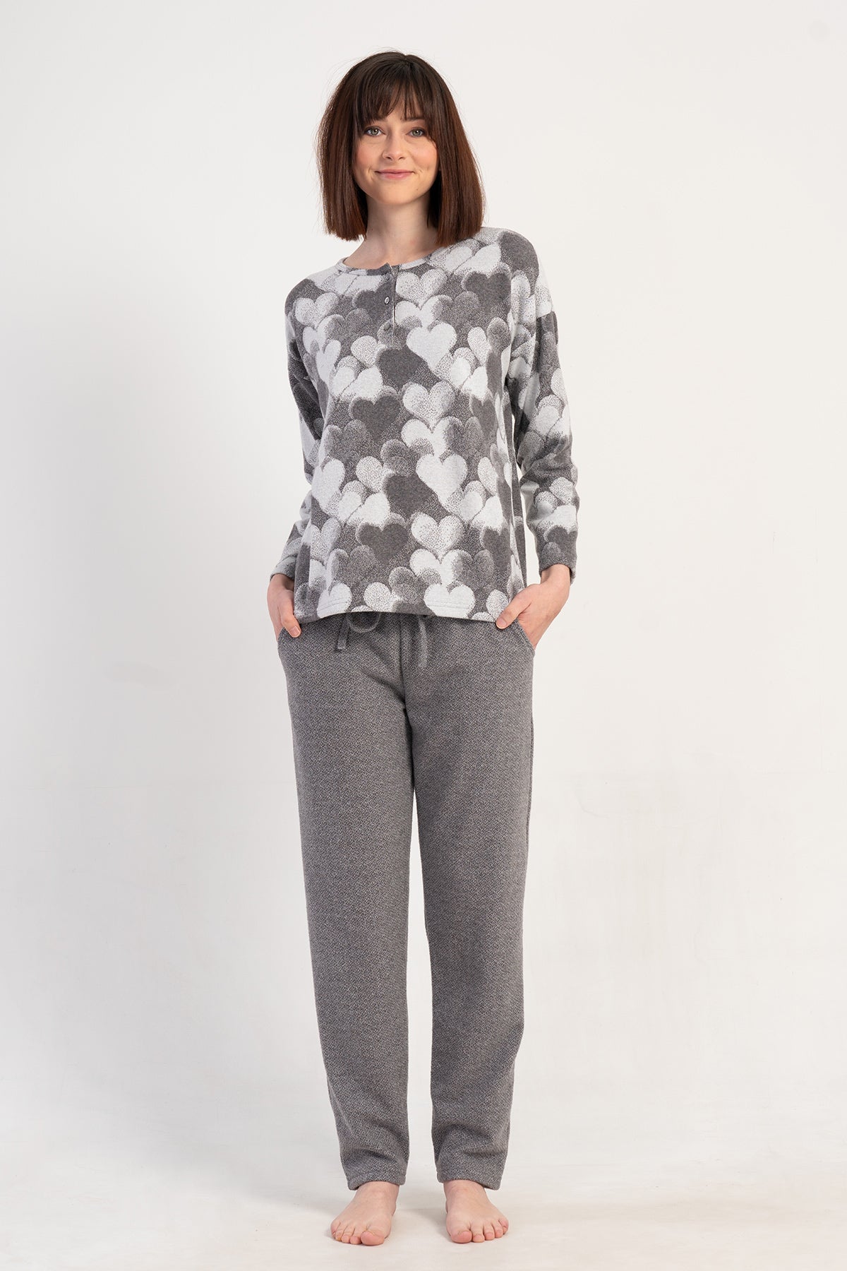 Woman Jacquard Interlock Long Sleeve Gray Pyjama Set. Vienetta pajama sets offer soft fabric and ergonomic fit to ensure comfortable, restful nights. Order Now!