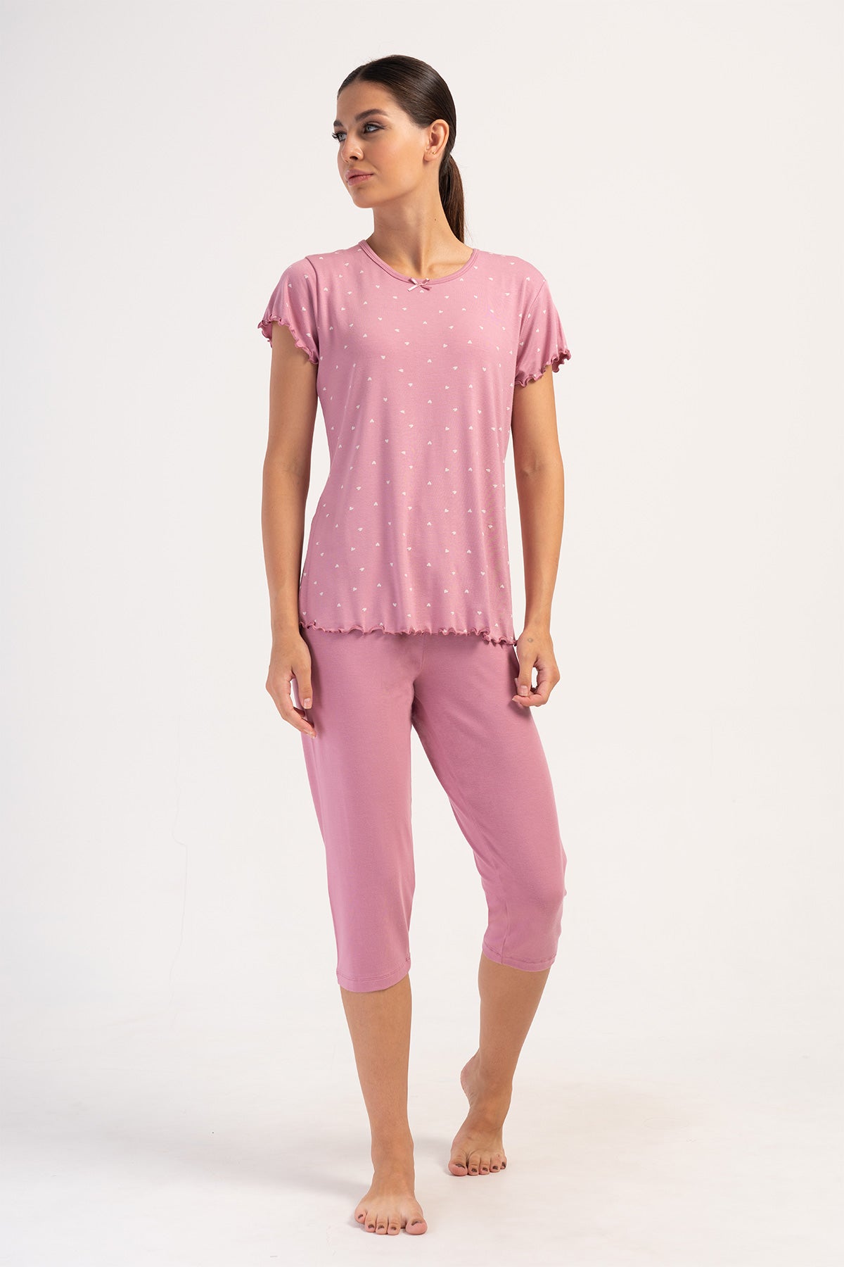 Woman Rosebloom Lycra Viscon Short Sleeve Capri Set