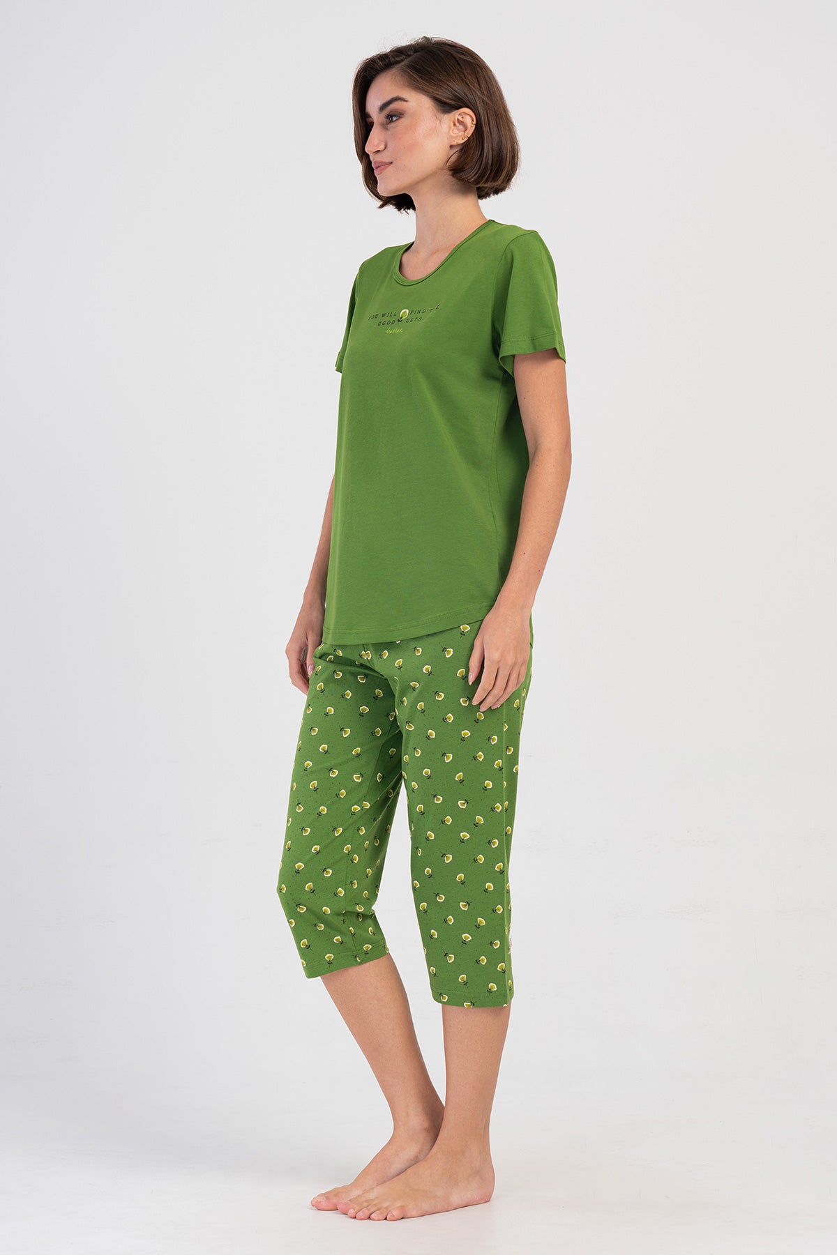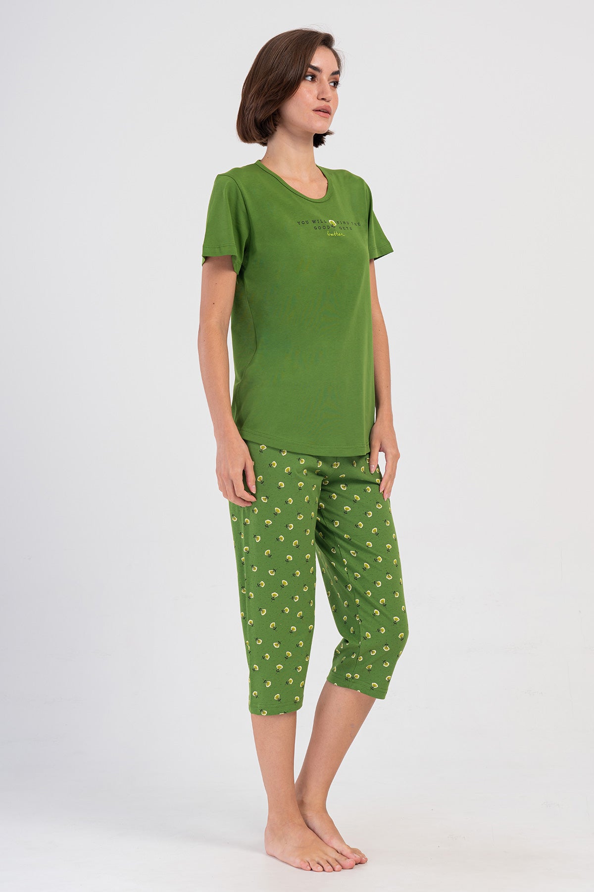 Woman Supreme Bright Green Short Sleeve O Neck Capri Set