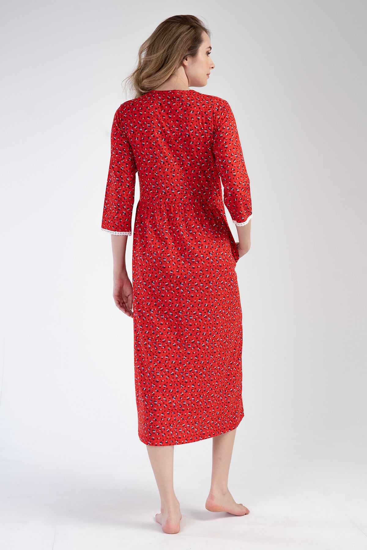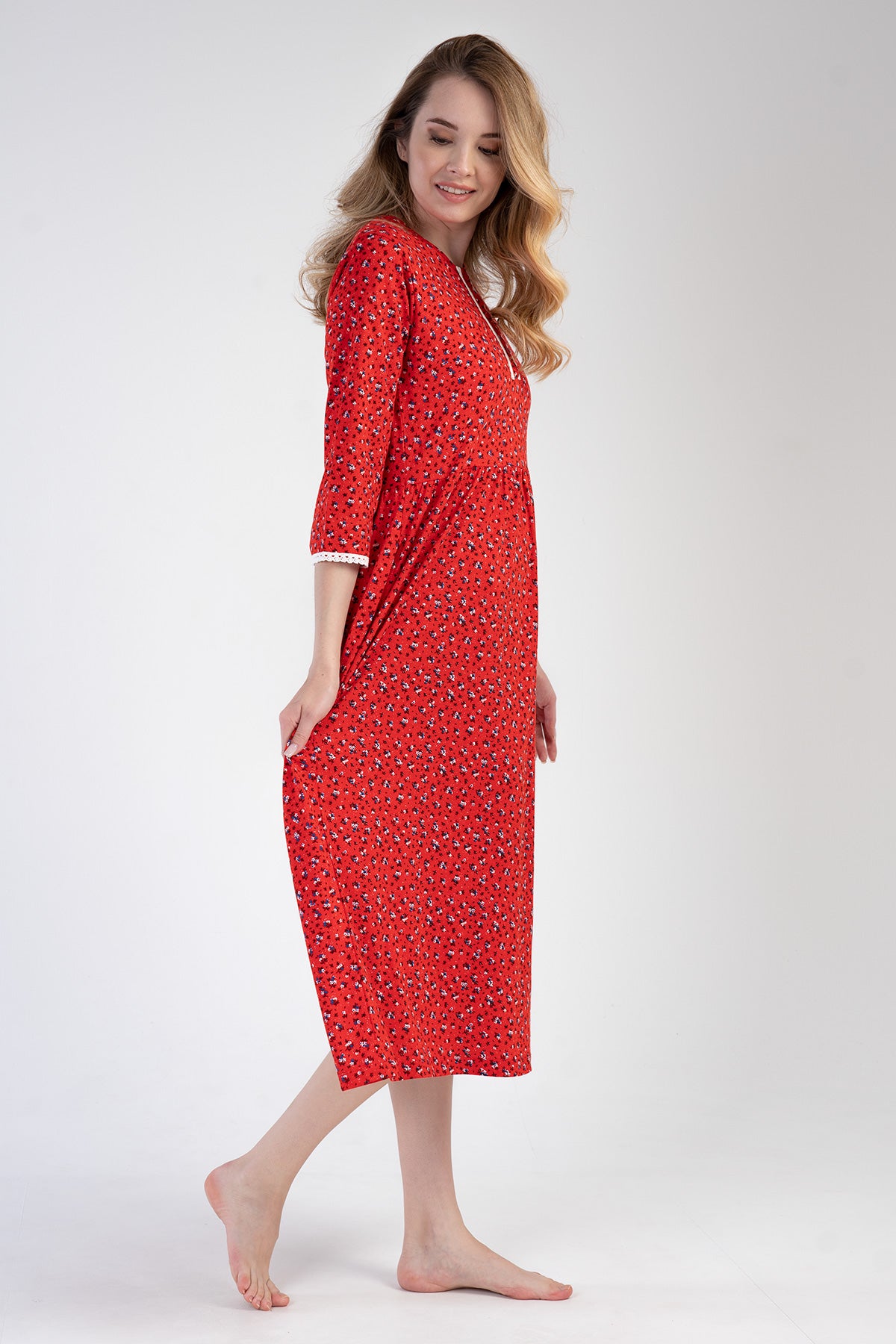 Woman Modal Red Poor Sleeve Buttoned Pocket Detail Dress
