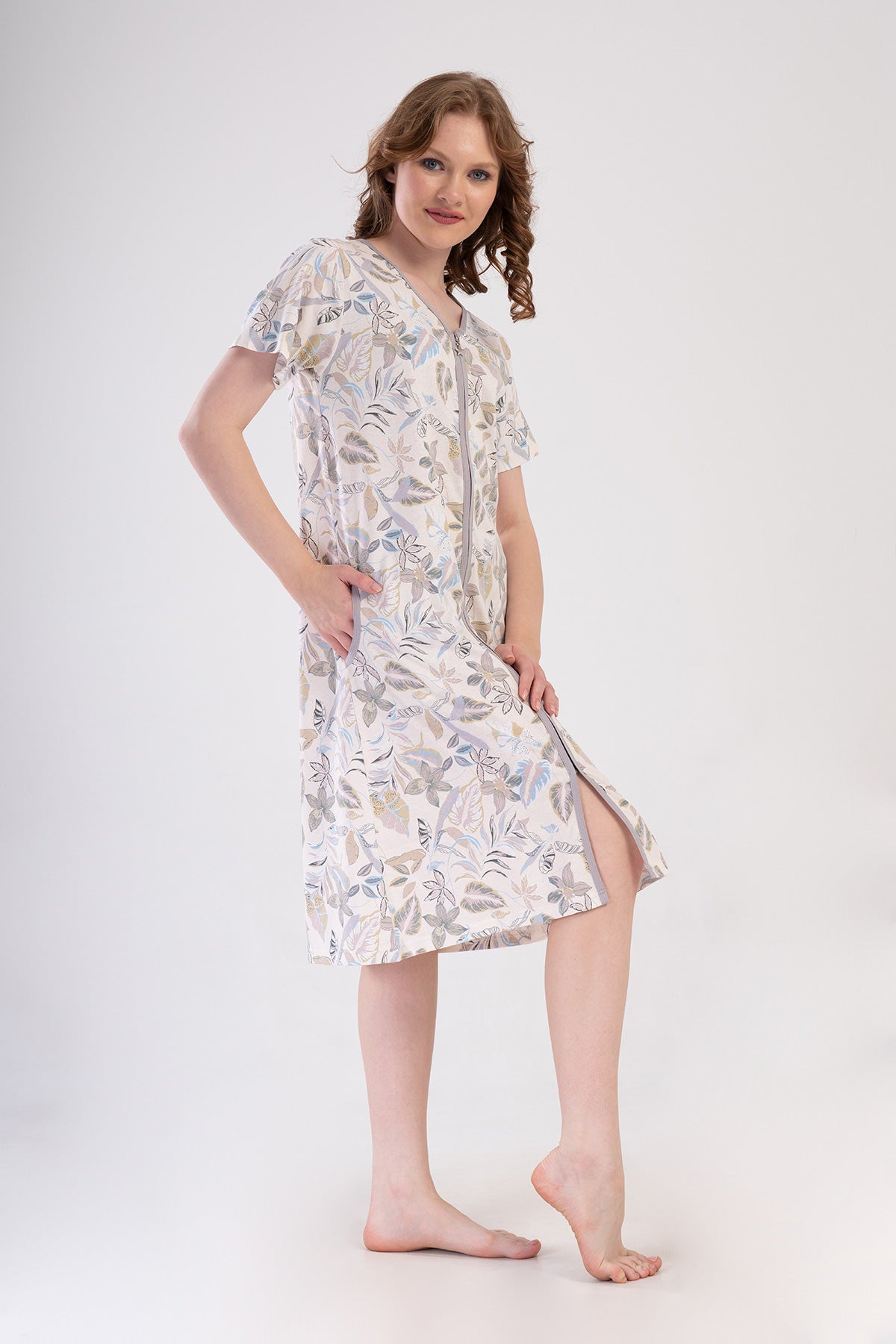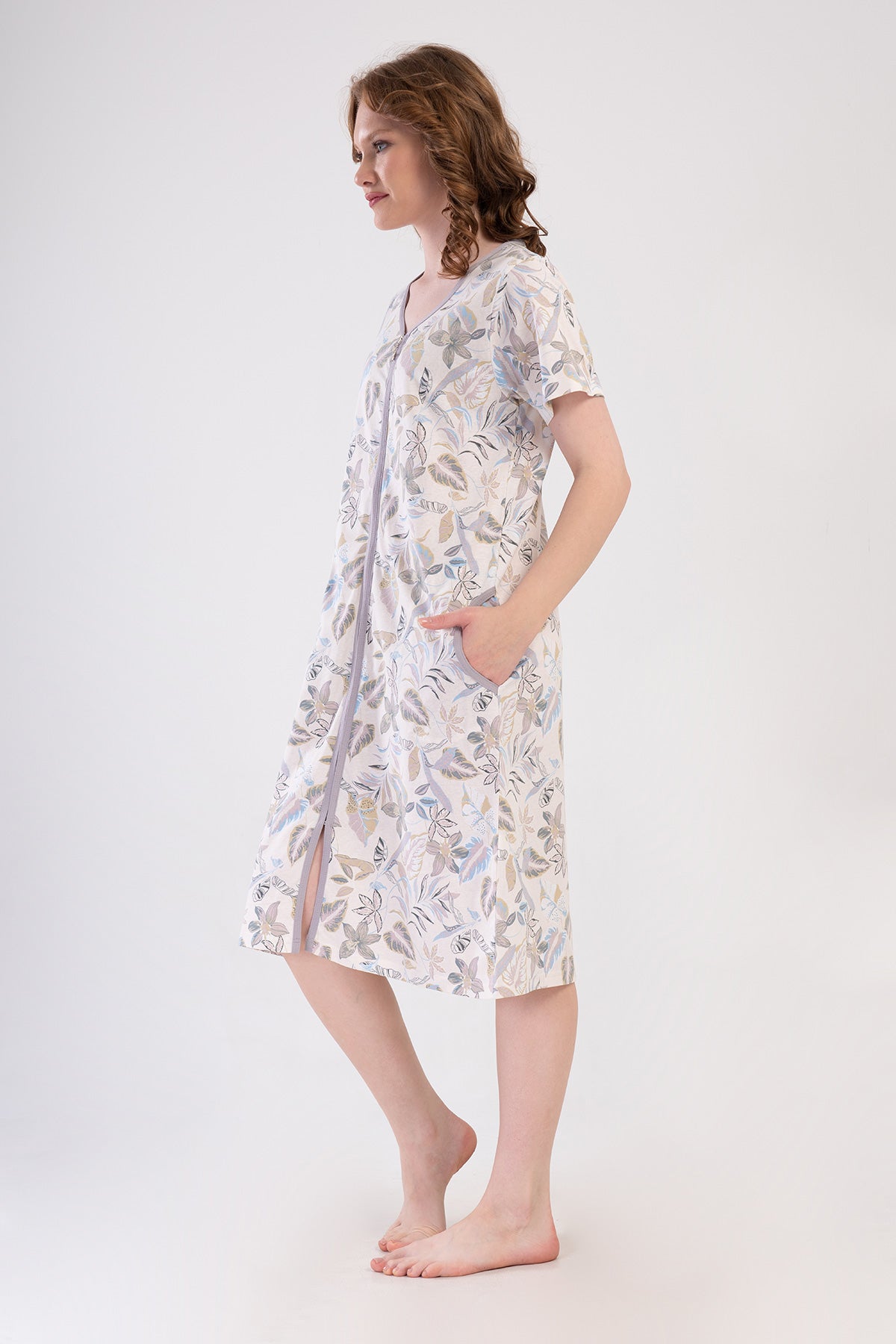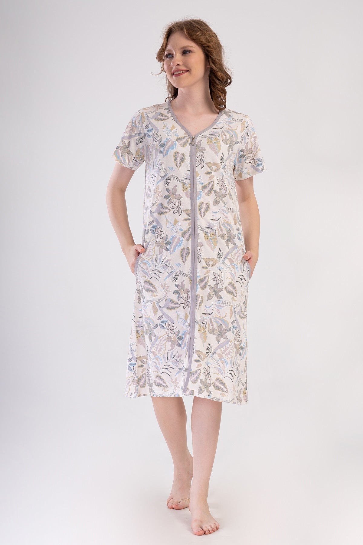Woman Supreme Olpa Short Sleeve Zipper and Pocket Detail Home Dress