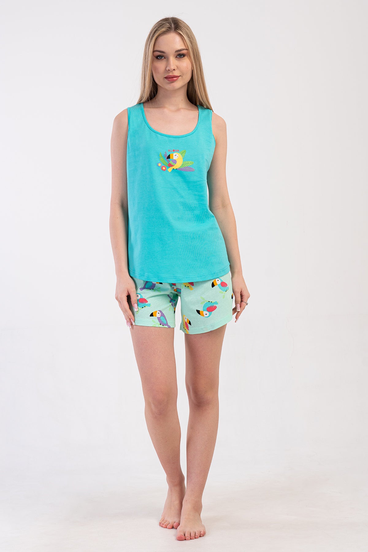 Woman Supreme Aloha Sleeveless Short Set. Vienetta short pajama sets are designed with lightweight fabrics to keep you cool during warm summer nights. They blend comfort and style for perfect homewear.