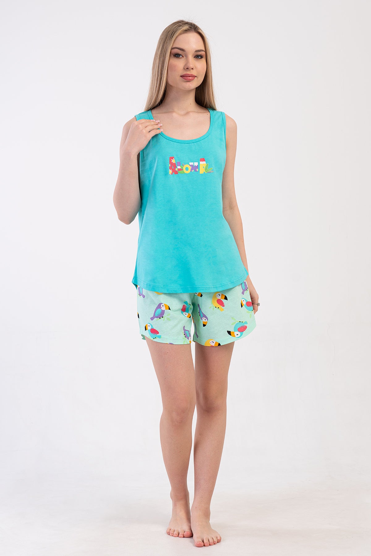Woman Supreme Big Size Sleeveless Aloha Short Set. Vienetta short pajama sets offer airy fabric and loose fit to keep you cool and comfy on summer evenings at home. Order Now!