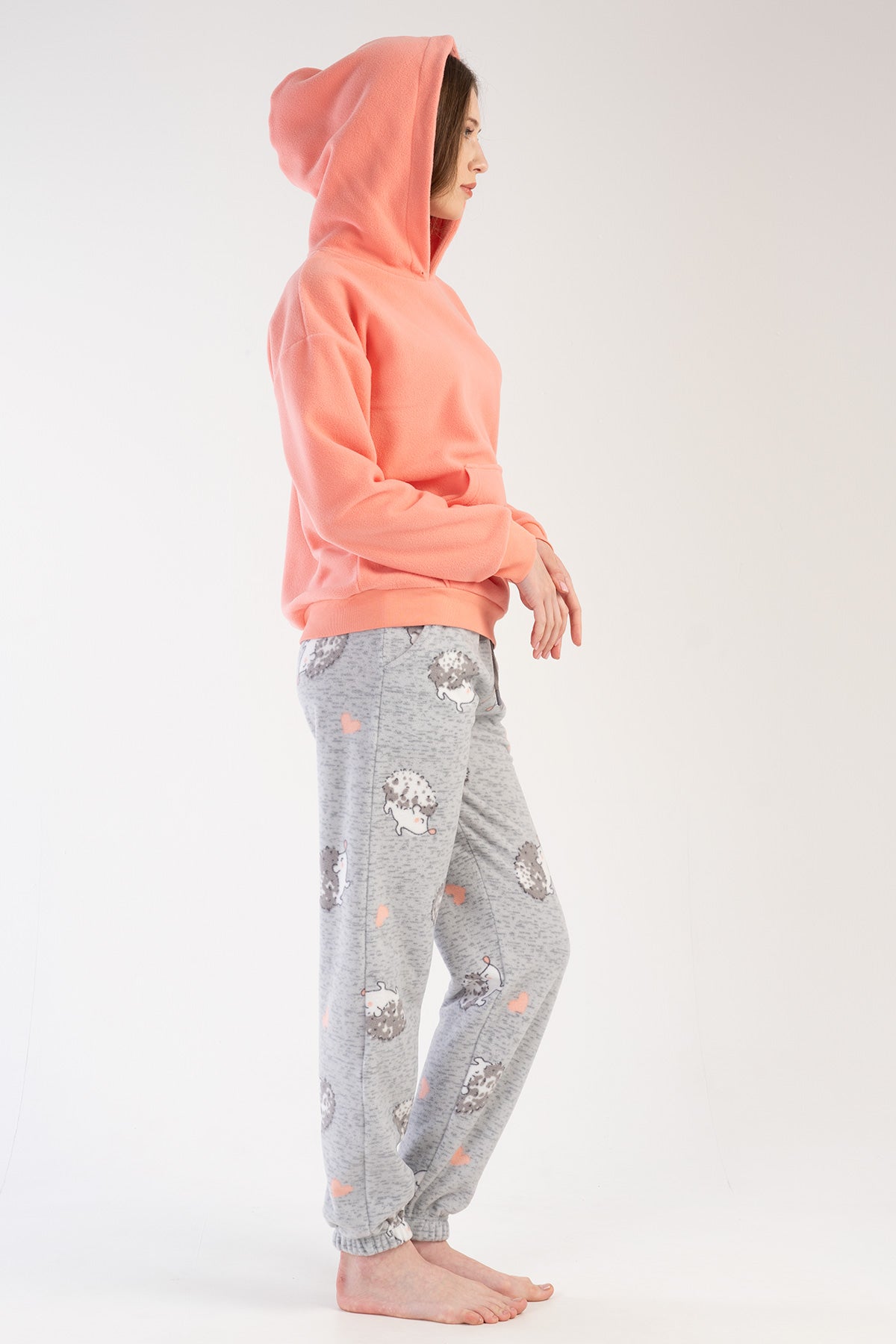 Woman Fleece Long Sleeve Hoodie Detail Pocket Detail Feel Good Pyjama Set