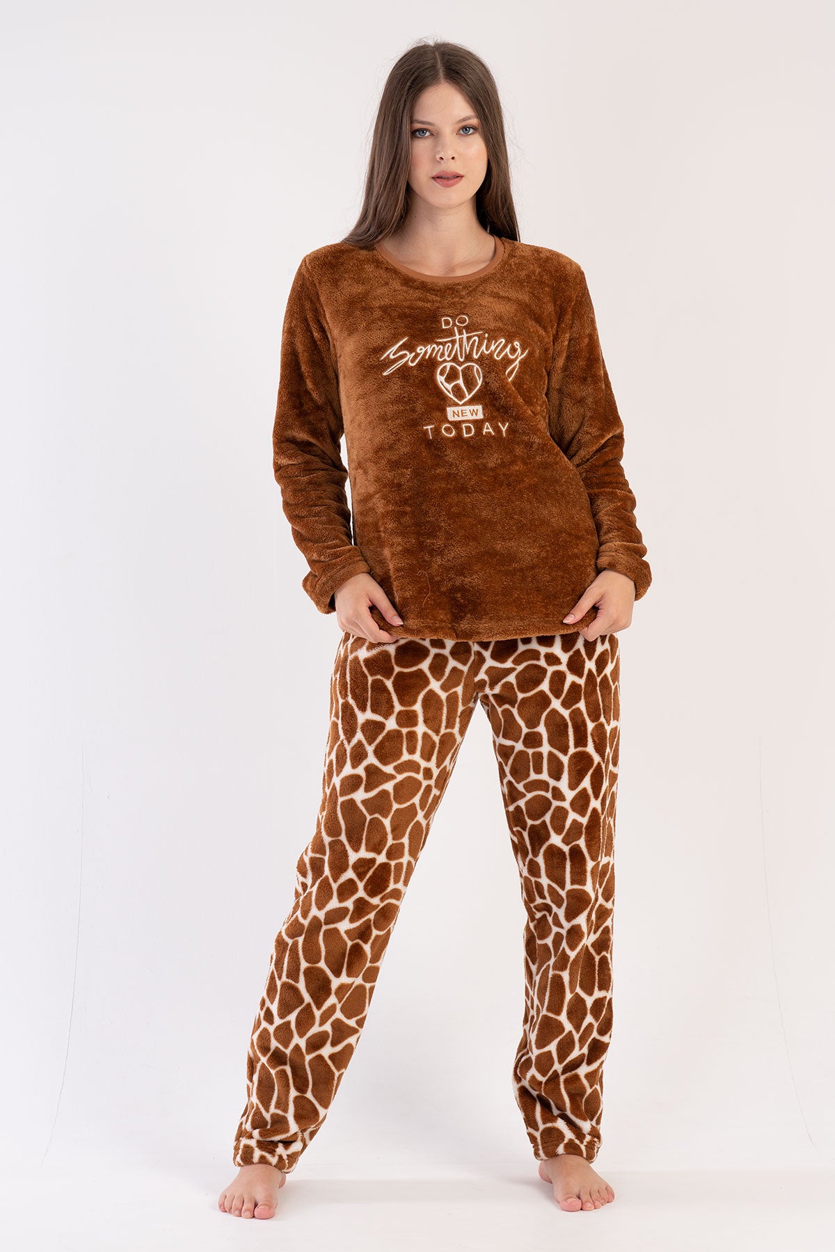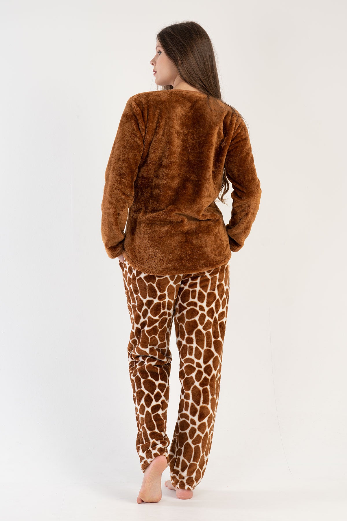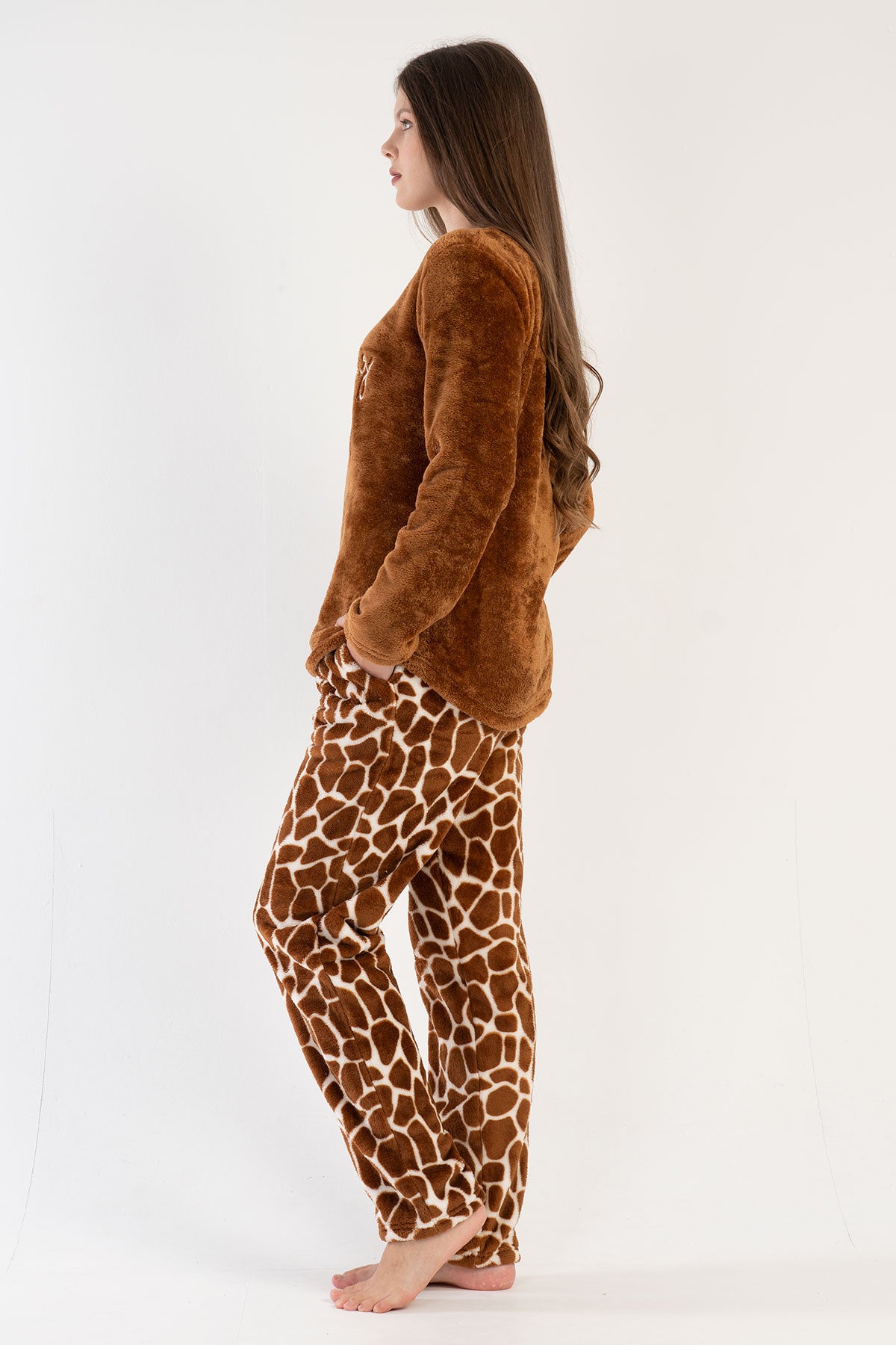 Woman Soft Long Sleeve Pocket Detail Brown Pyjama Set