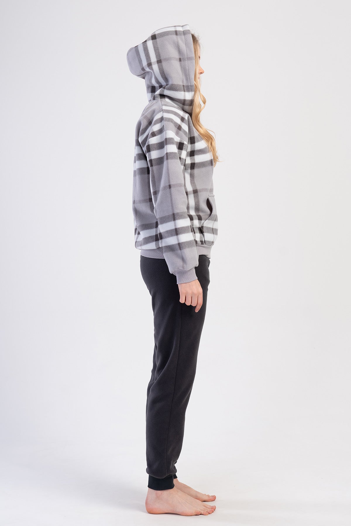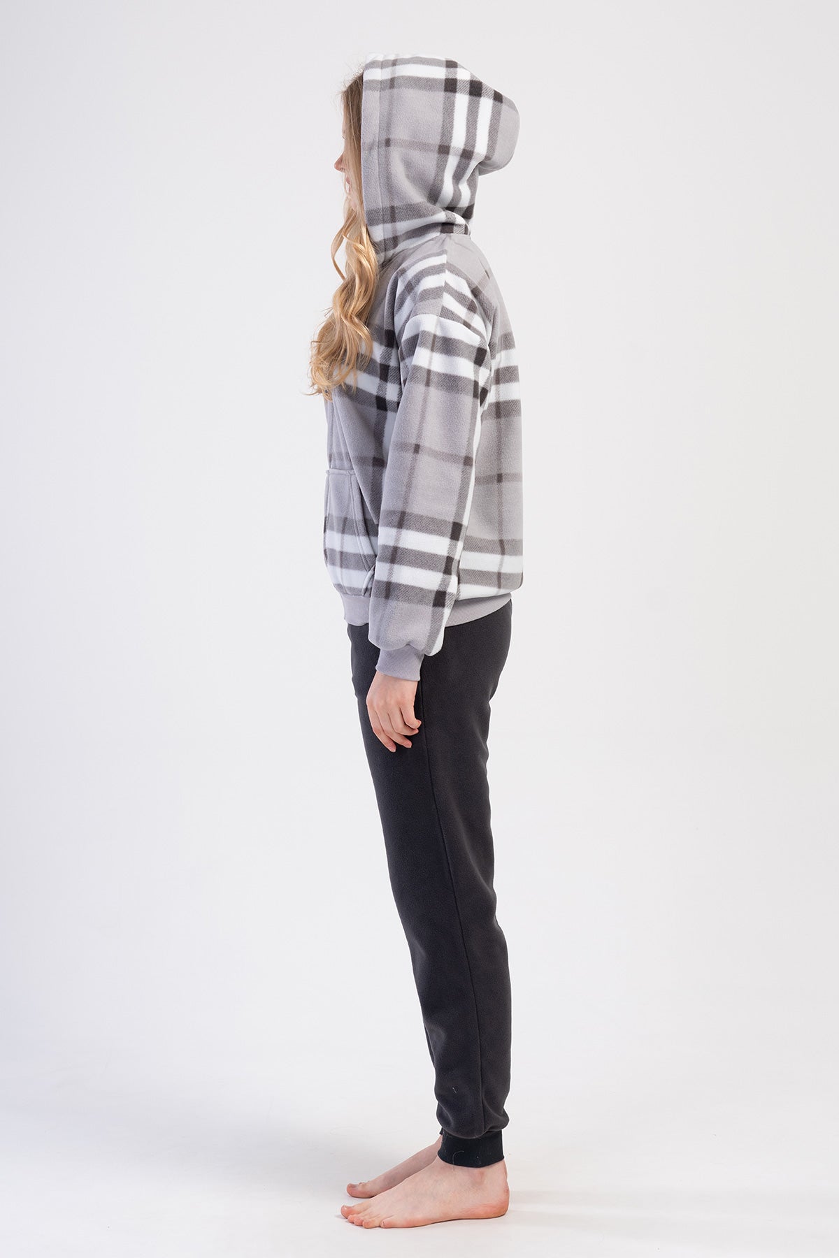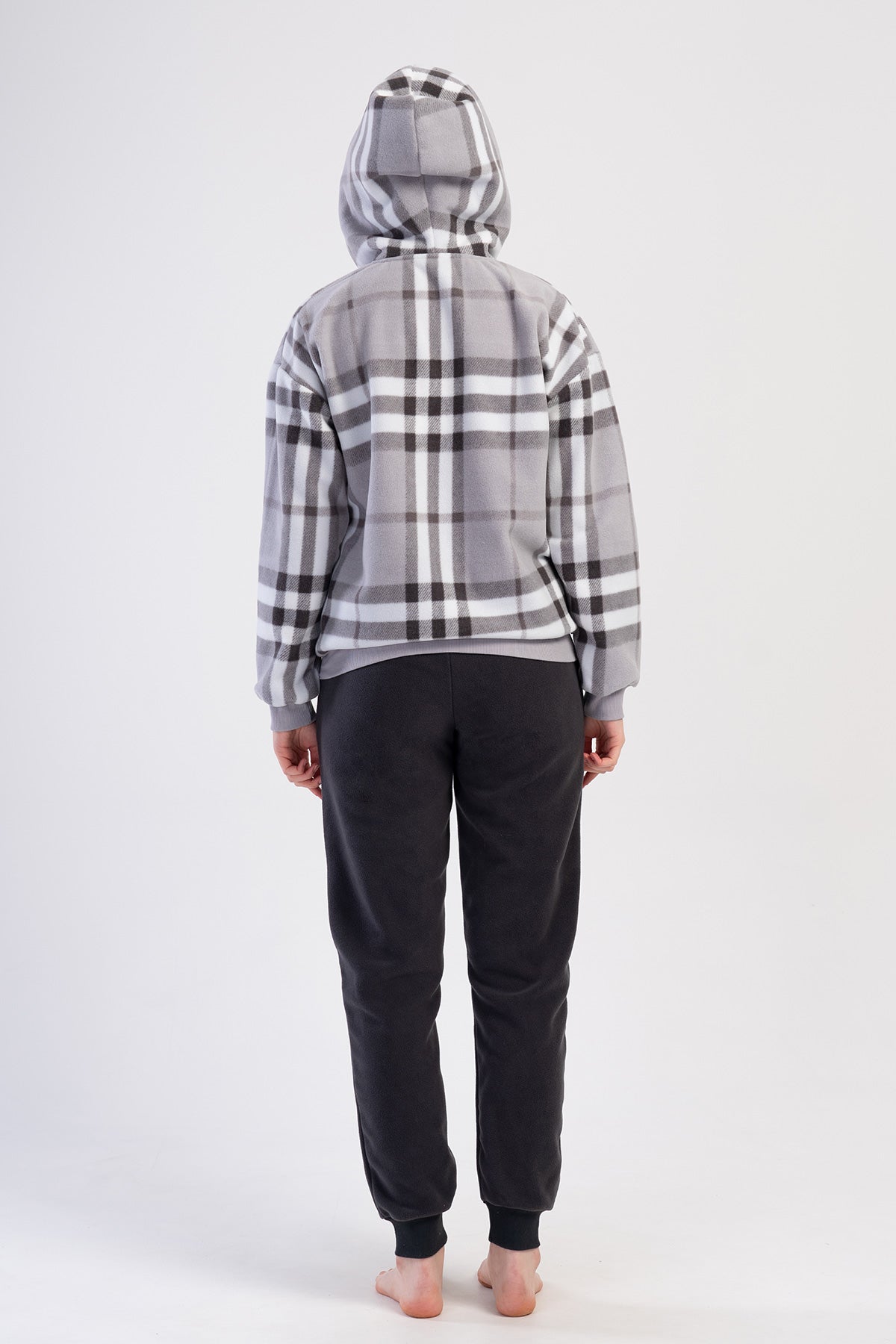 Woman Gany Fleece Long Sleeve Low Shoulder Zipper Detail Pyjama Set