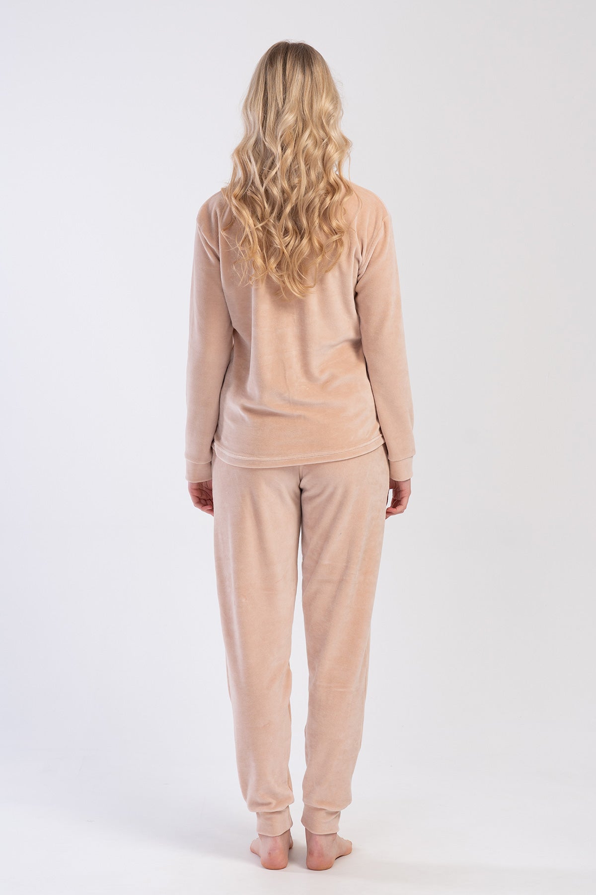 Woman Velvet Bellie O Neck Long Sleeve Pocket Detail Pyjama Set