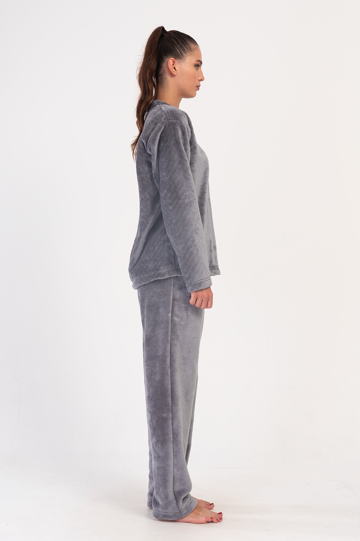 Woman Fume Ultrasoft Low Shoulder O Neck Long Sleeve Pocket Detail Pyjama Set