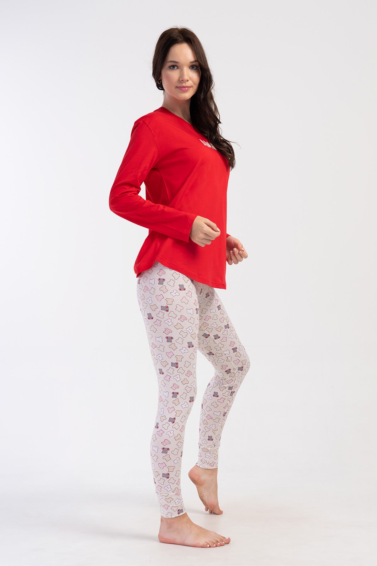 Woman Blood Lycra Supreme O Neck Long Sleeve Tight Pyjama Set