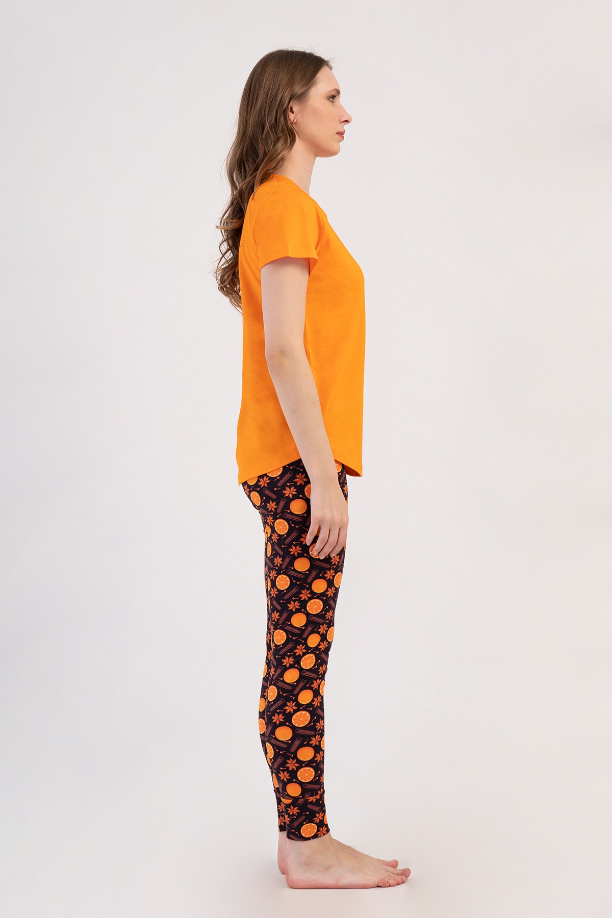 Woman Lycra Supreme Orangey Short Sleeve O Neck Pyjama Set