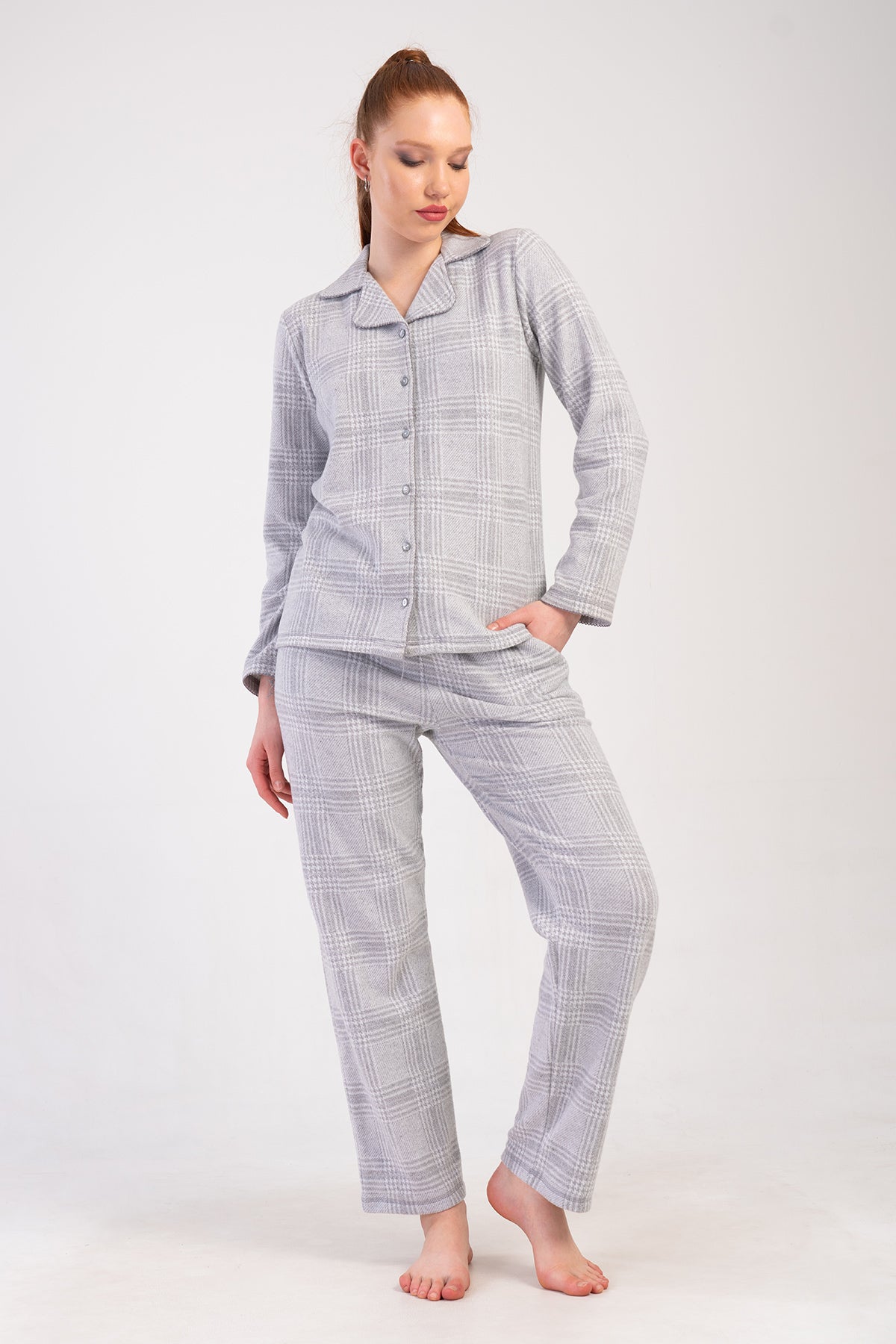 Woman Jacquard Interlock Long Sleeve Plaid Pyjama Set. Vienetta pajama sets offer soft fabric and ergonomic fit to ensure comfortable, restful nights. Order Now!