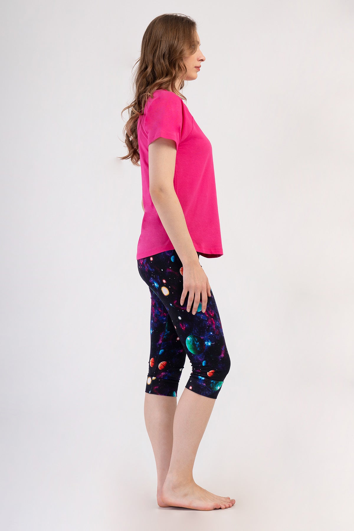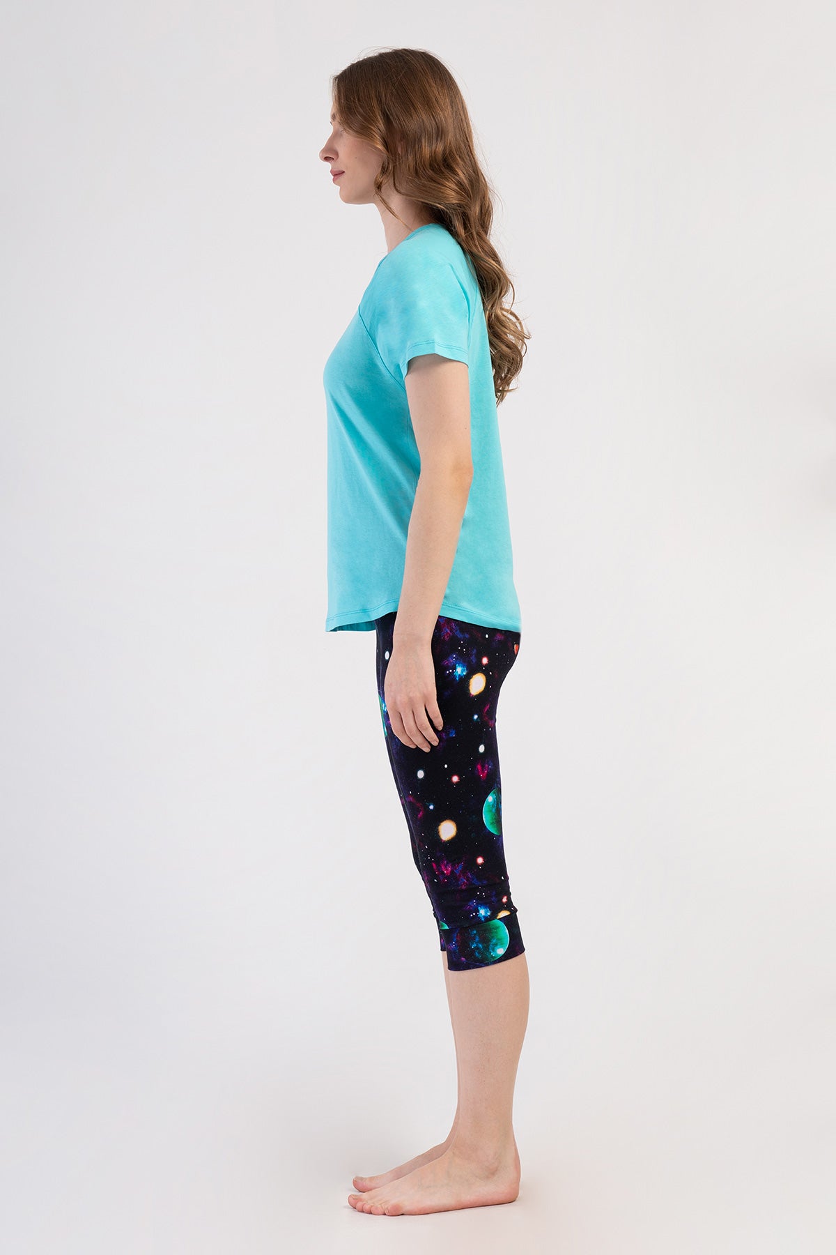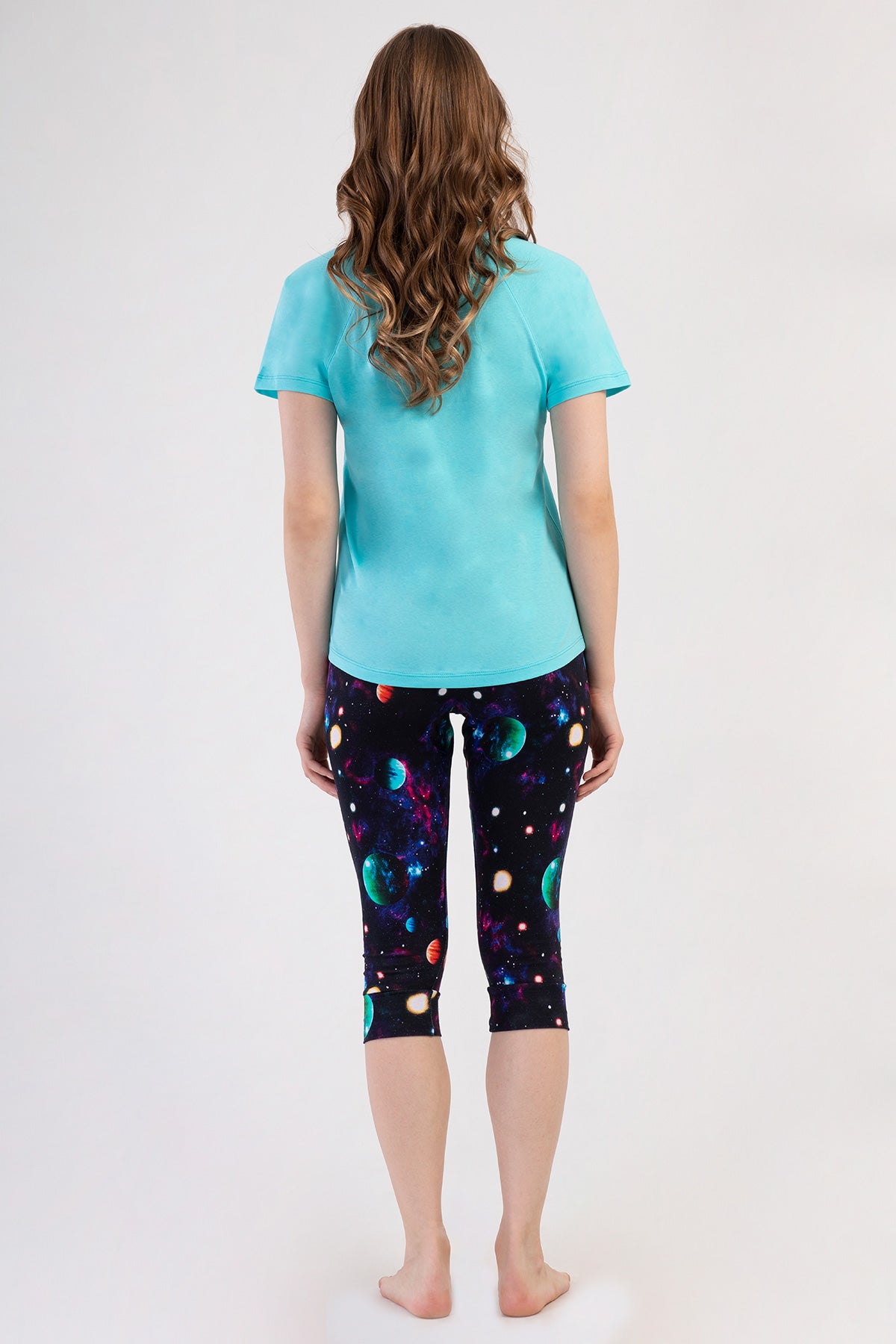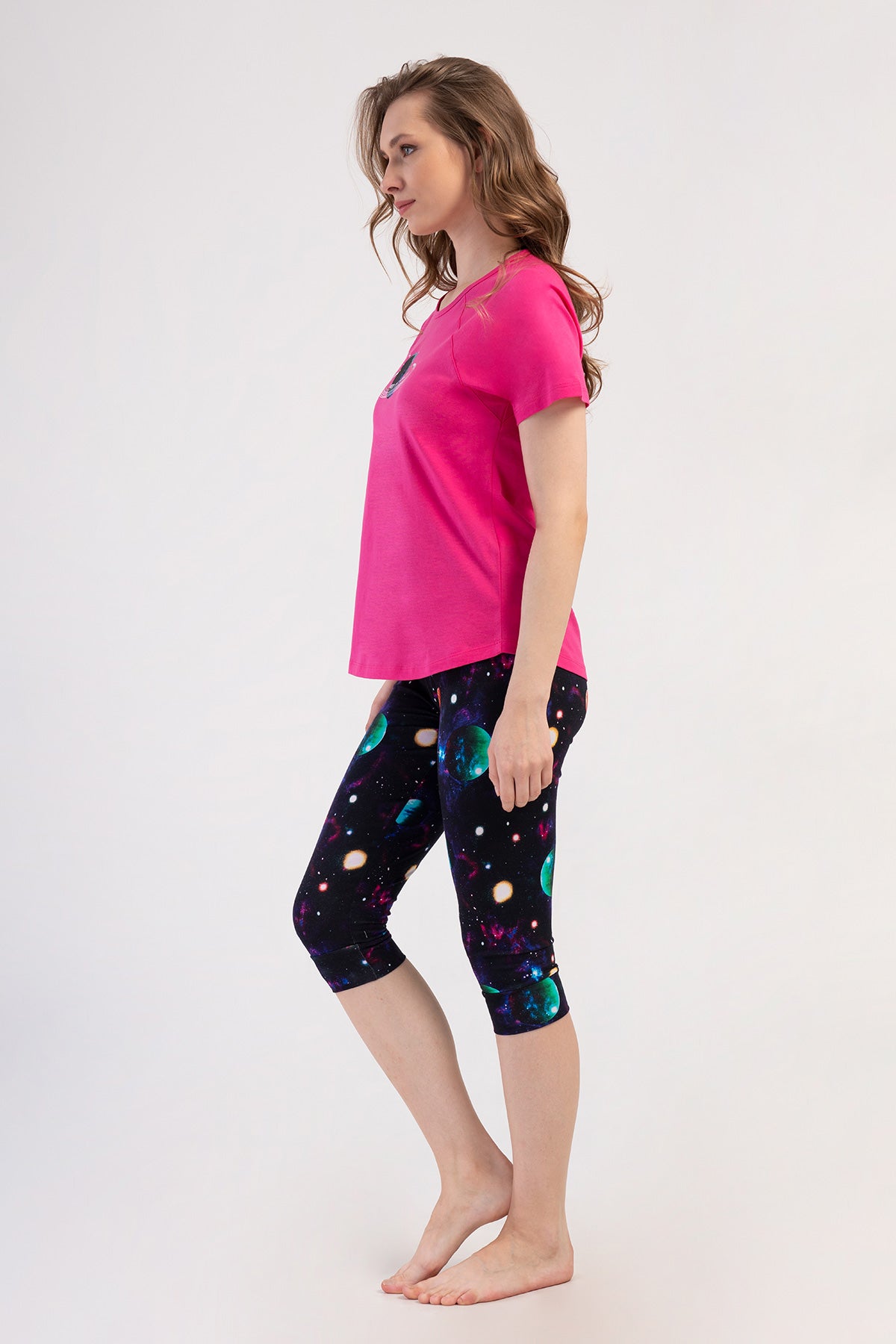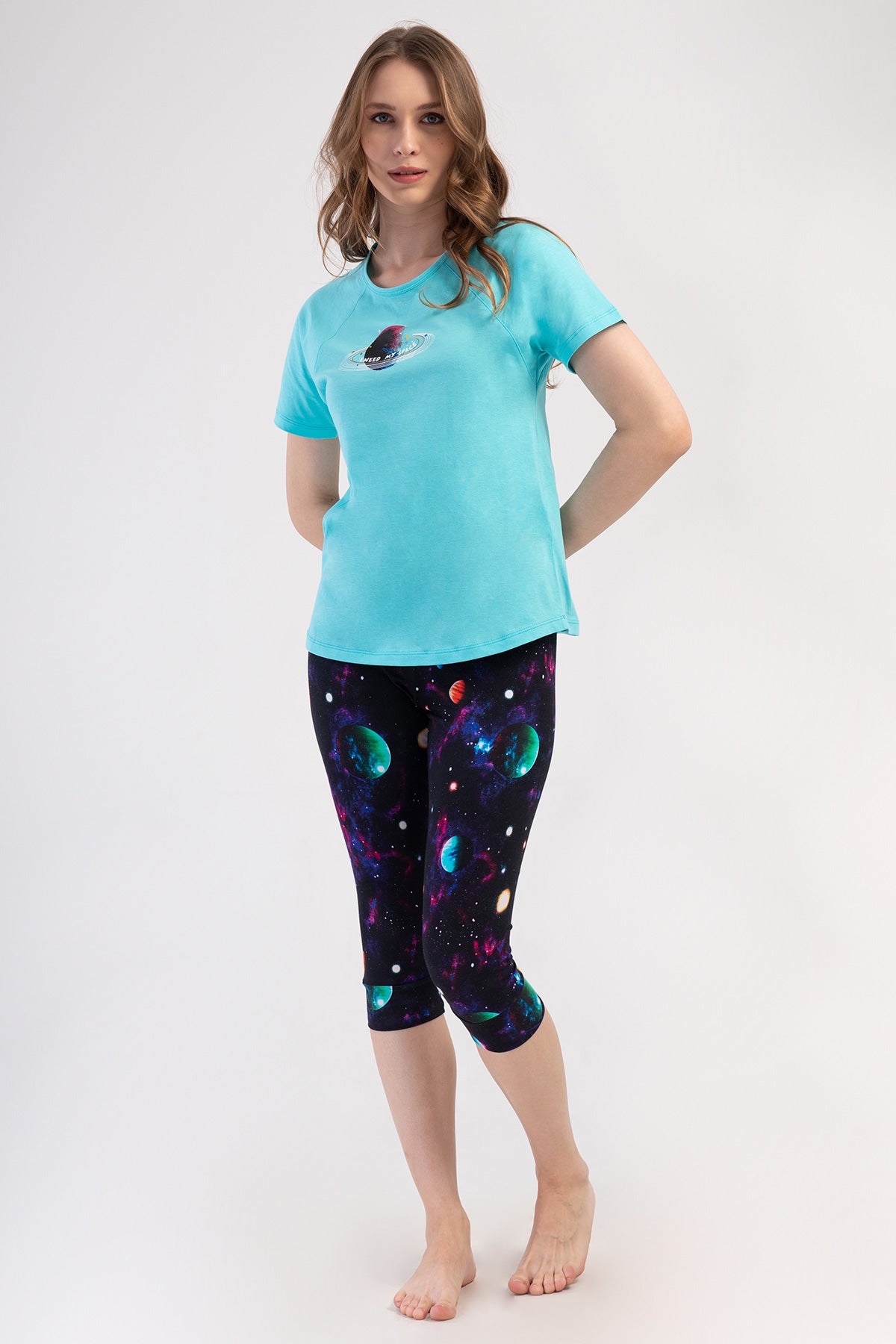 WOMEN'S LYC SUPREM O-NECK RAGLAN SHORT SLEEVE SKIRT OVAL CUFF CAPRI SUIT