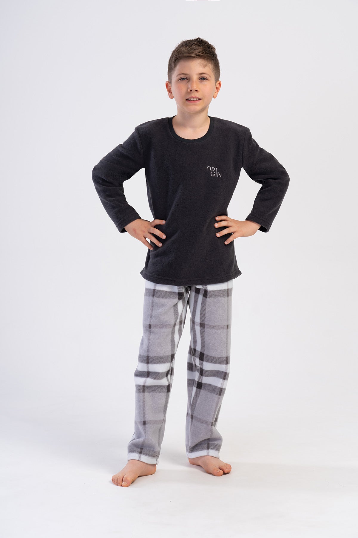 • ERKEK COCUK POLAR O YAKA UZUN KOL PIJAMA TAKIM(9-10/15-16)