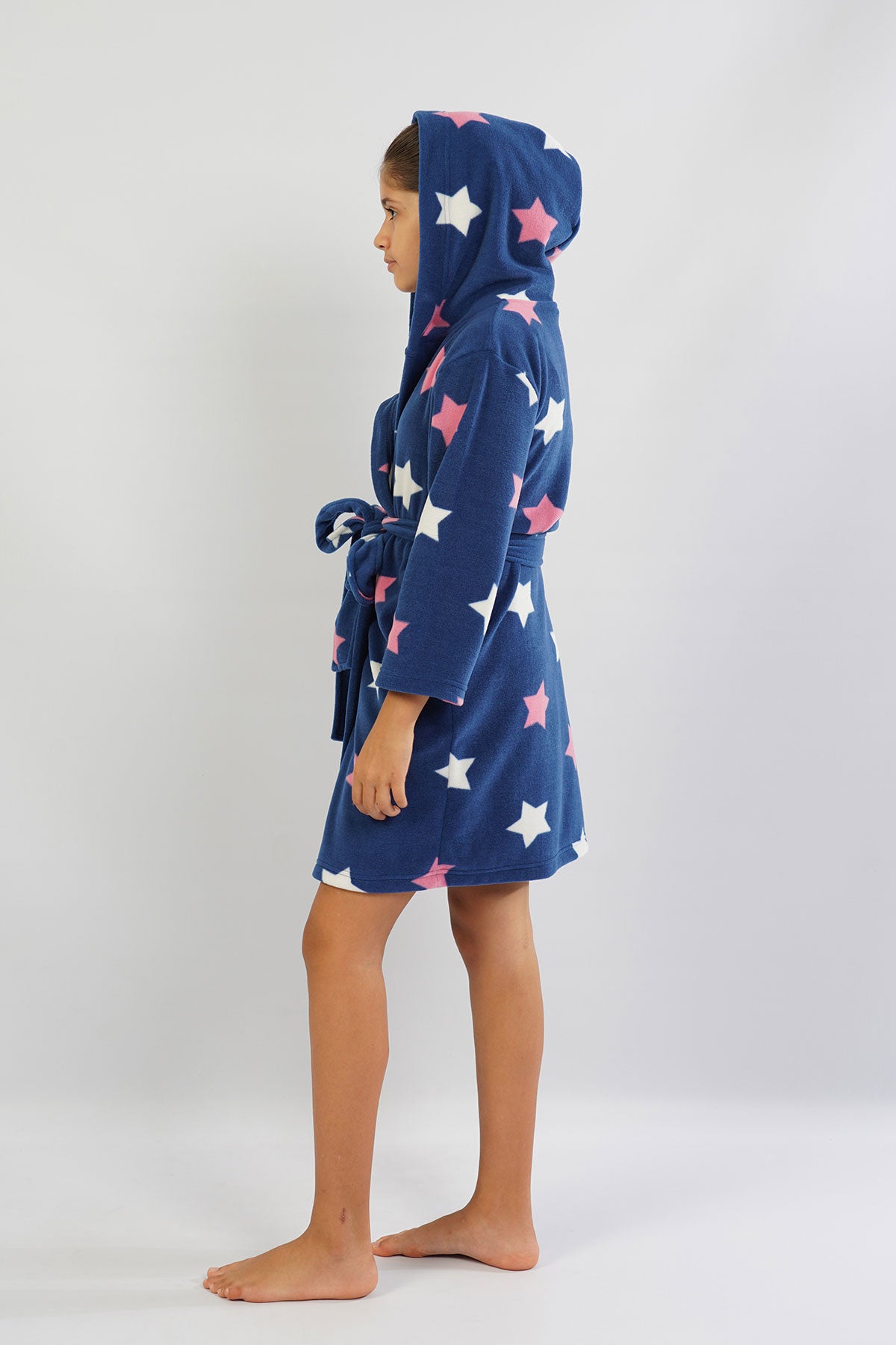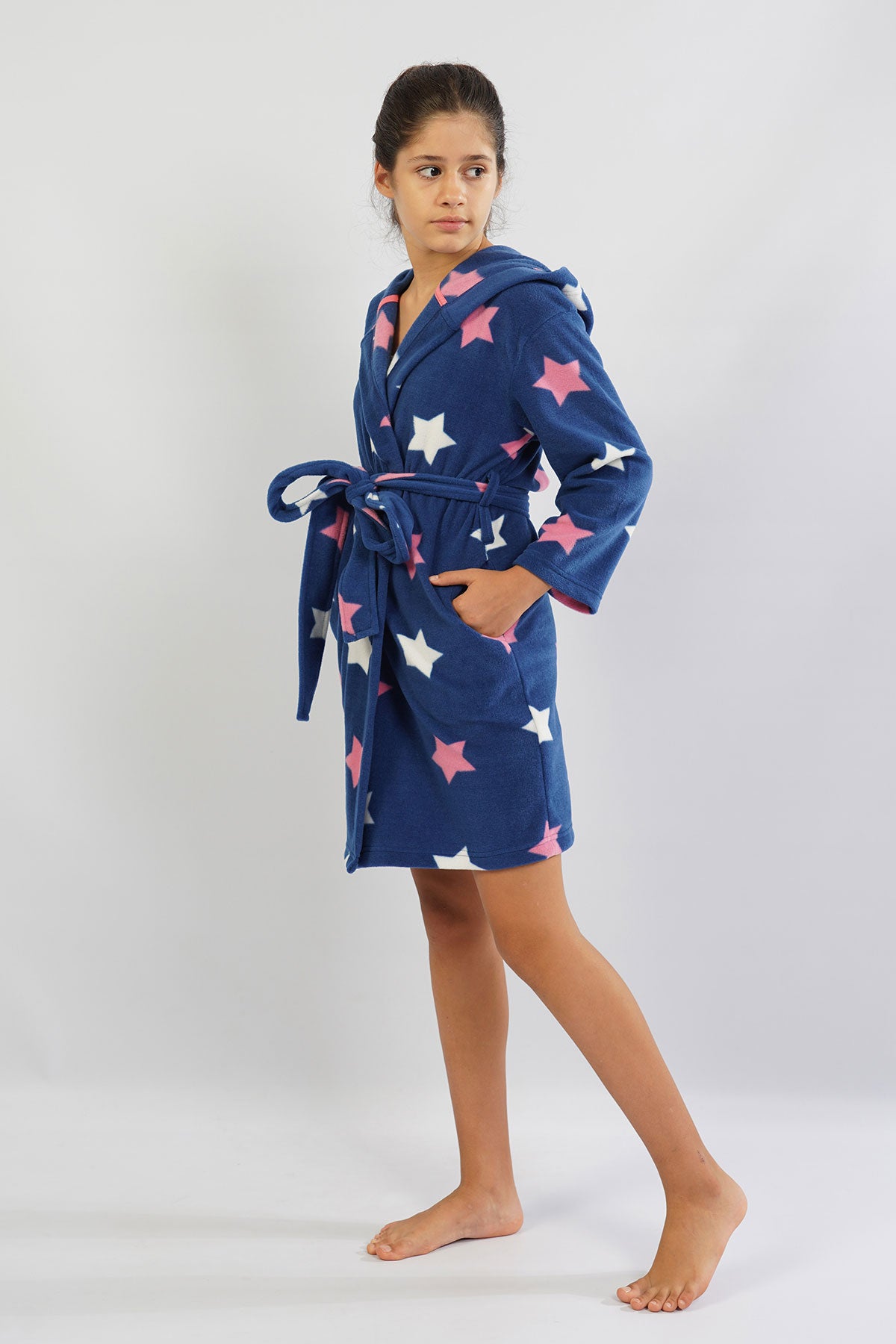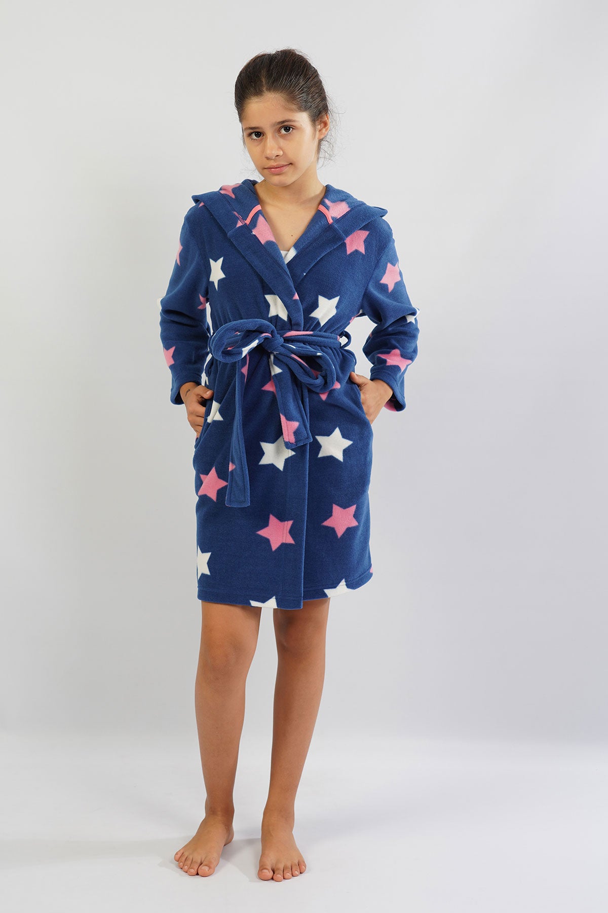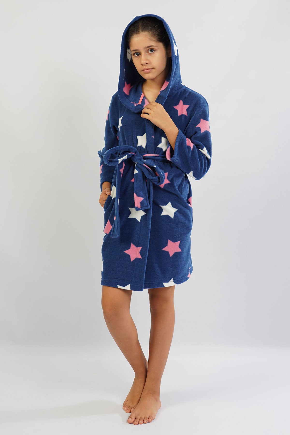 GIRL'S FLEECE HOODED ROBE WITH POCKETS