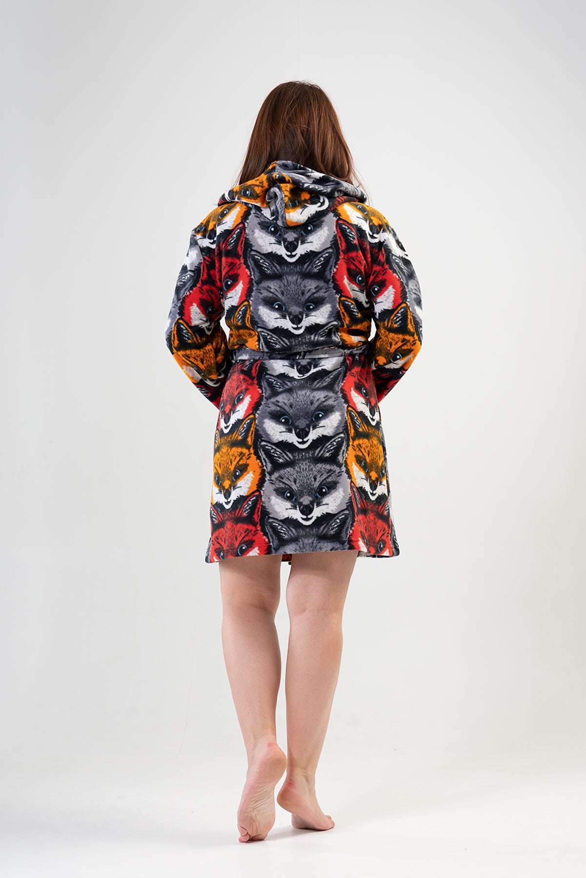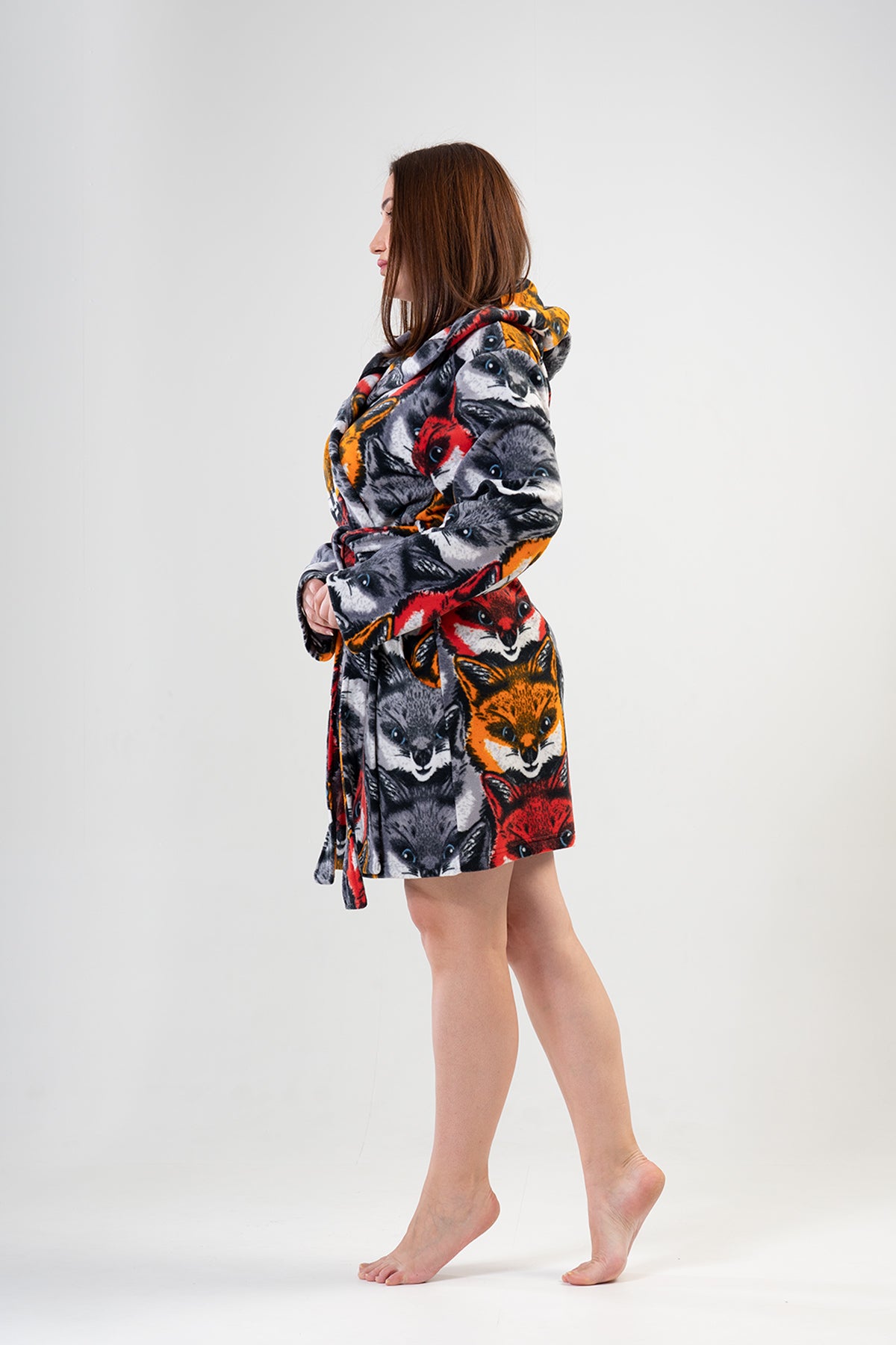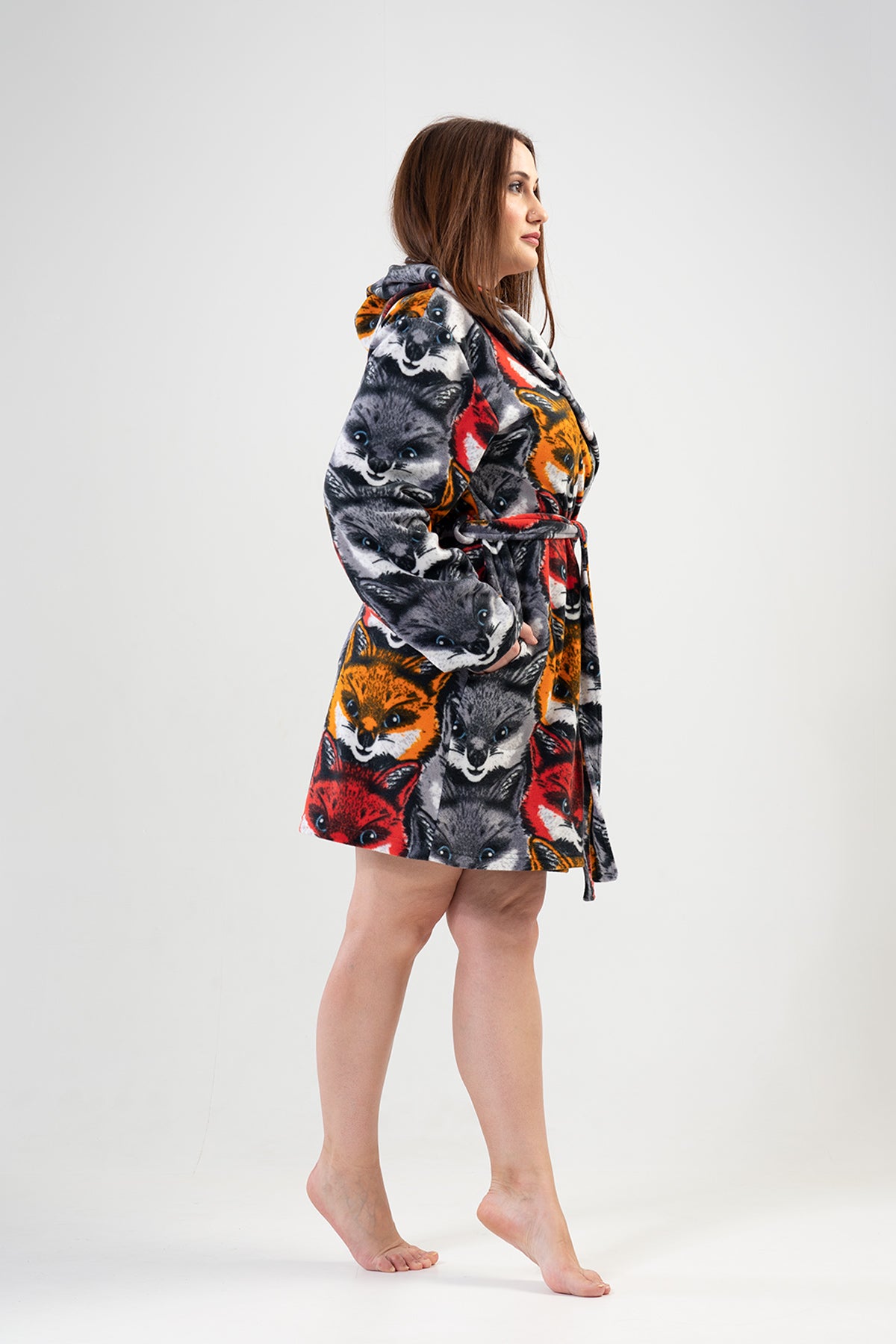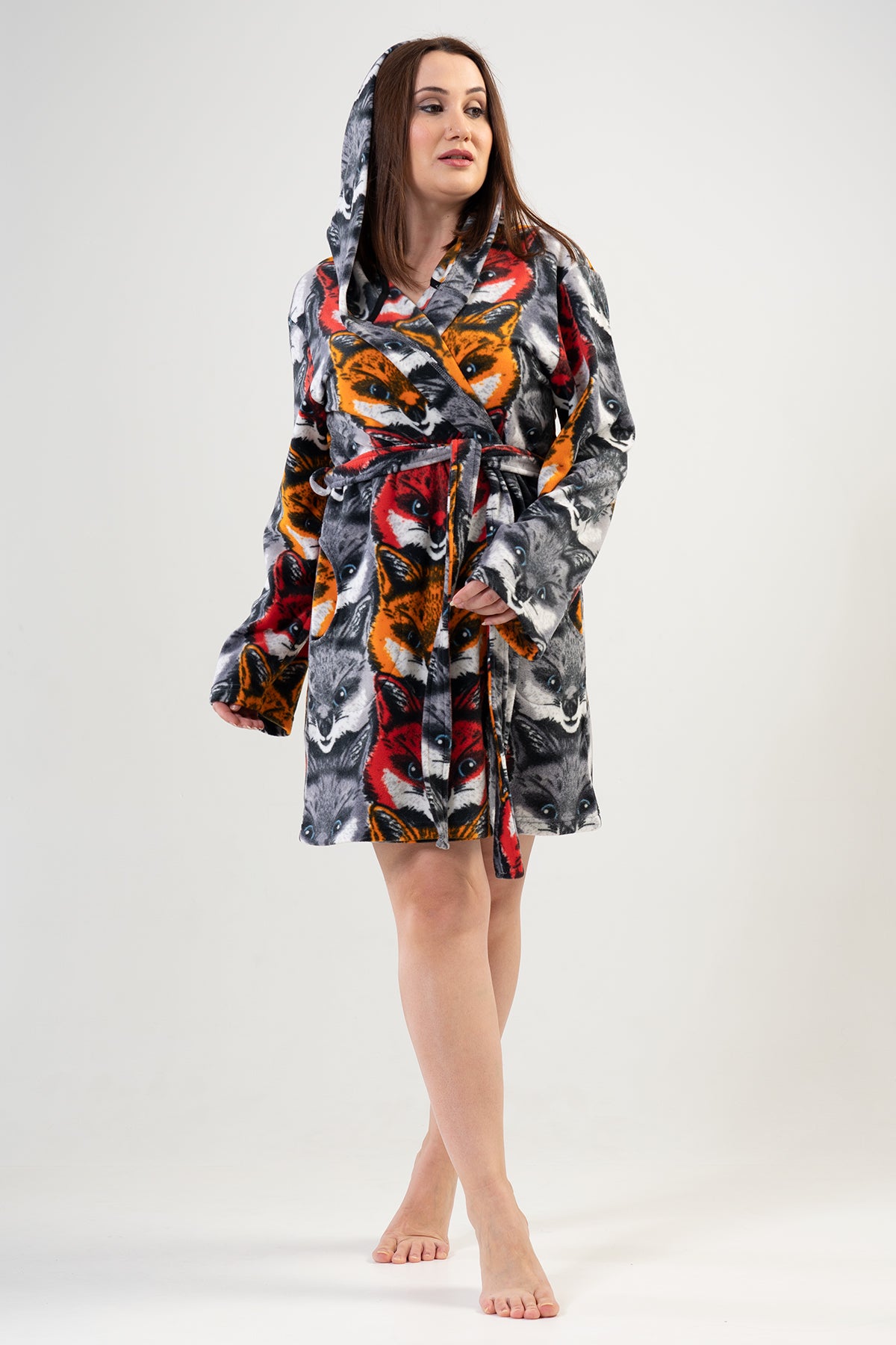 WOMEN'S FLEECE XXL HOODED LONG-SLEEVE SHORT ROBE 201040