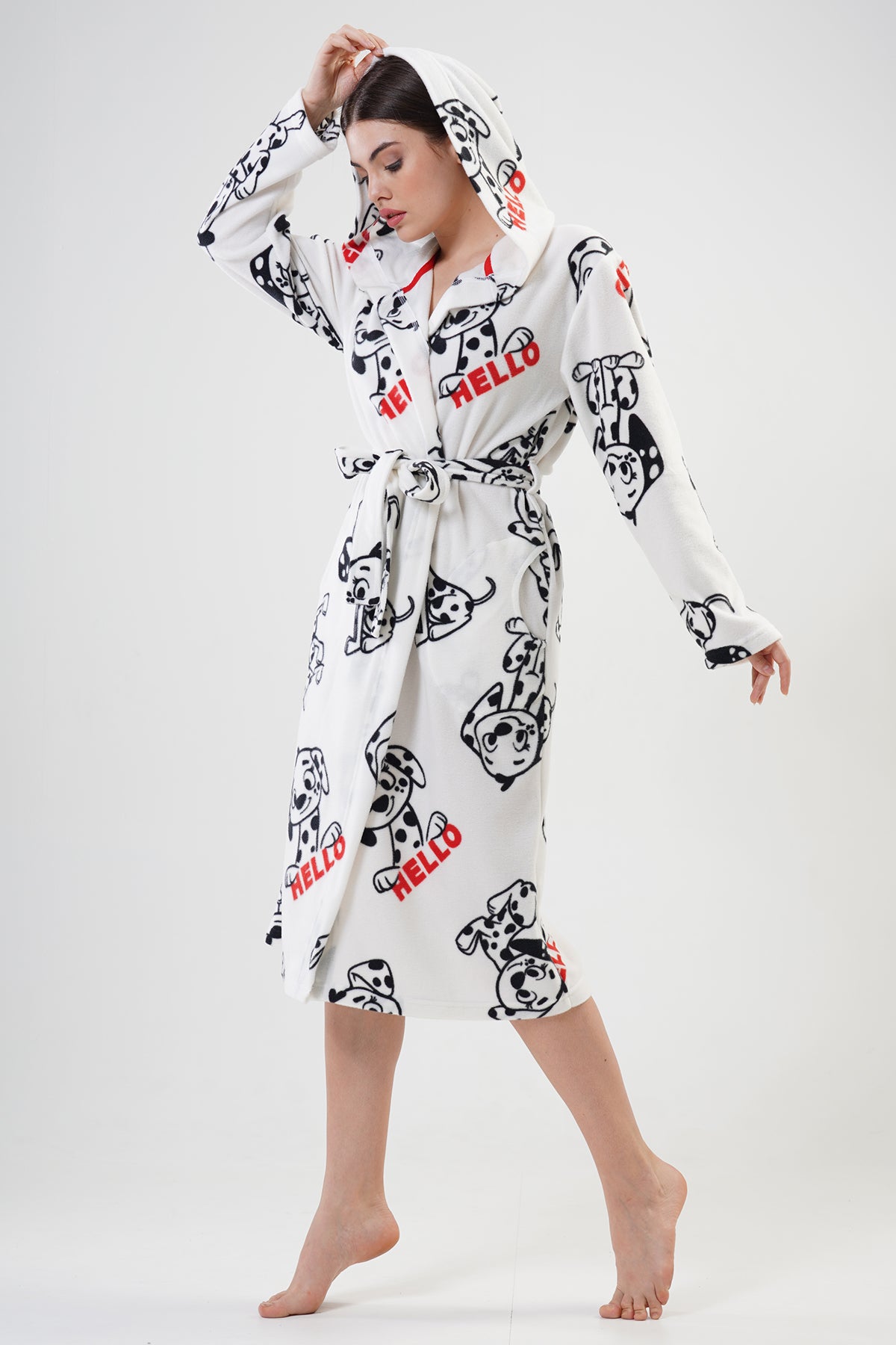 WOMEN'S FLEECE HOODED LONG-SLEEVE ROBE 203044