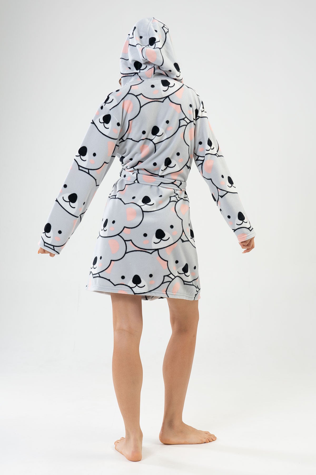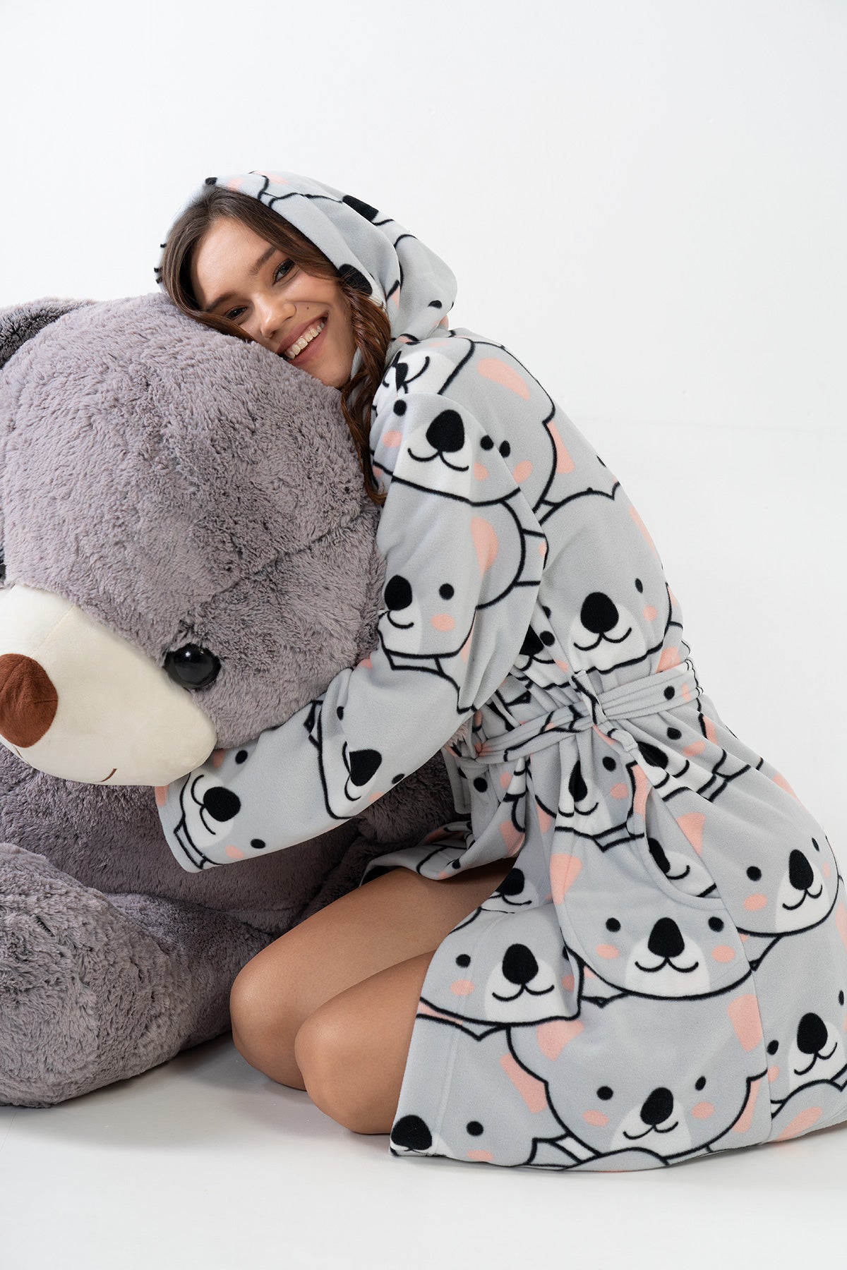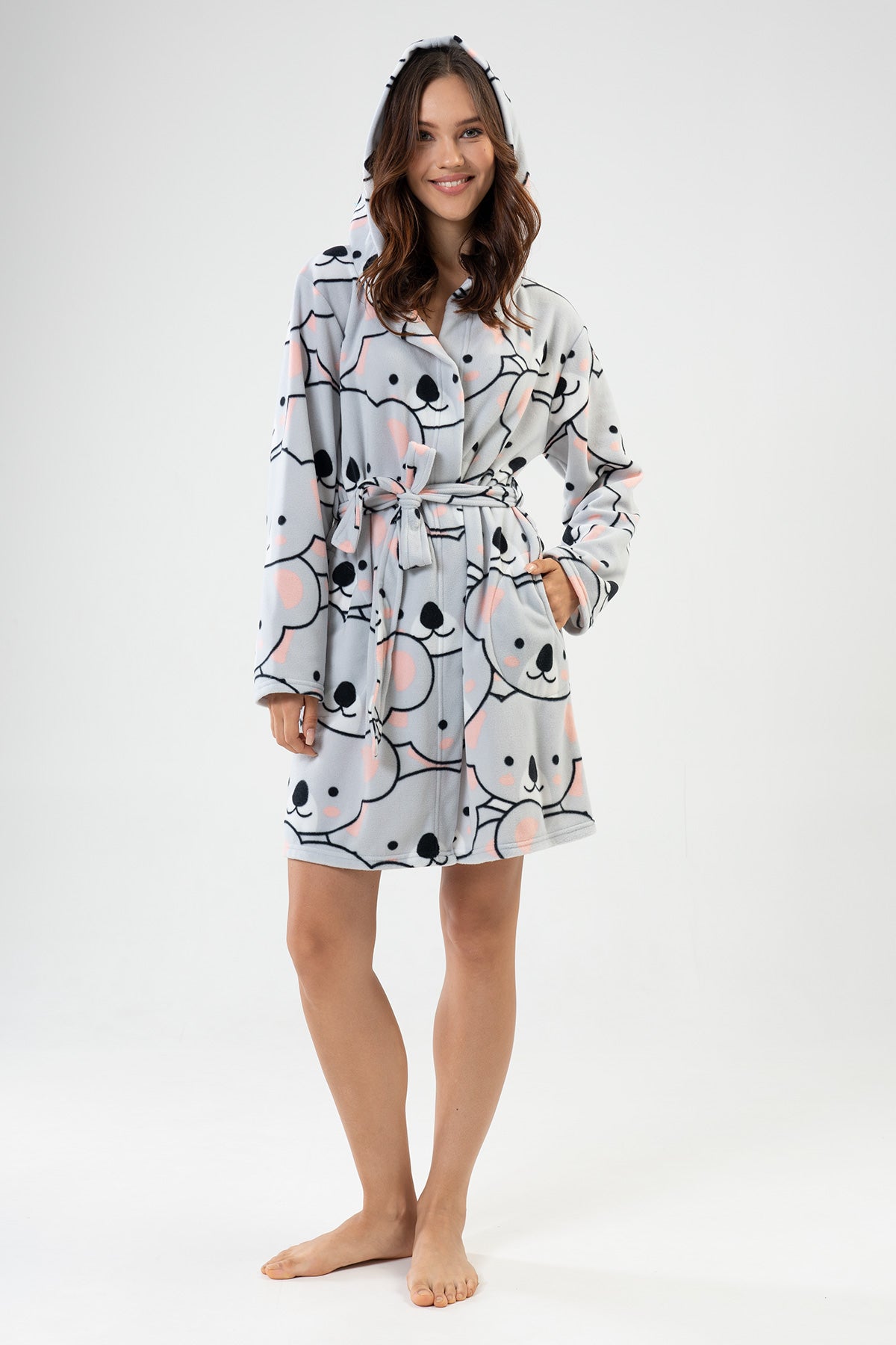 WOMEN'S FLEECE HOODED SHORT ROBE WITH POCKETS