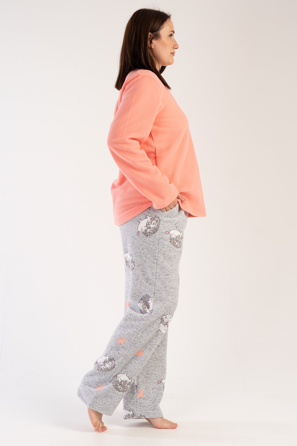 WOMEN'S POLAR XXL O-NECK LONG SLEEVE SKIRT WITH OVAL POCKET PAJAMA SET