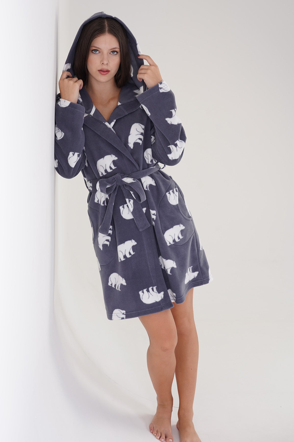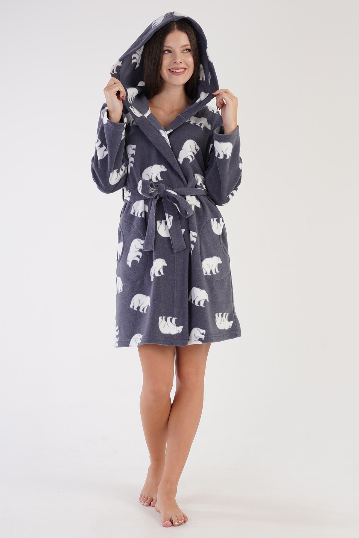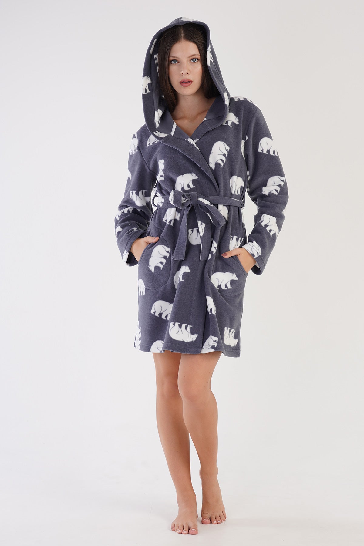 WOMEN'S FLEECE HOODED LONG-SLEEVE SHORT-SLEEVED ROBE WITH POCKETS