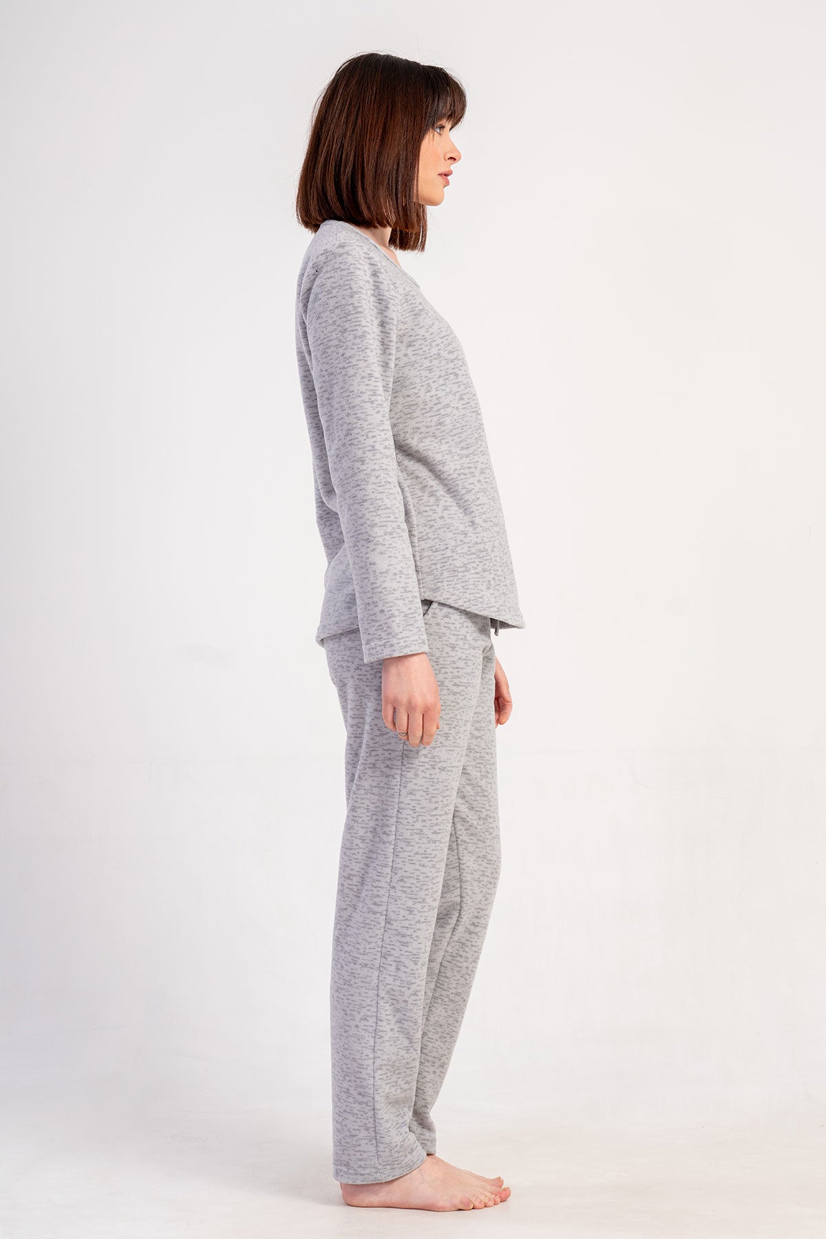 WOMEN'S FLEECE O-NECK LONG SLEEVE SKIRT WITH OVAL POCKET PAJAMA SET