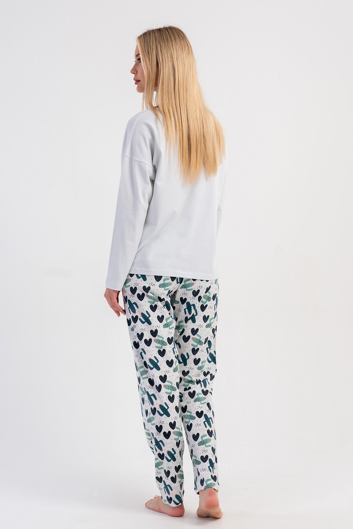 WOMEN'S LYC SUPREME COLLAR, LOW-SHOULDER, LONG-SLEEVE PAJAMA SET