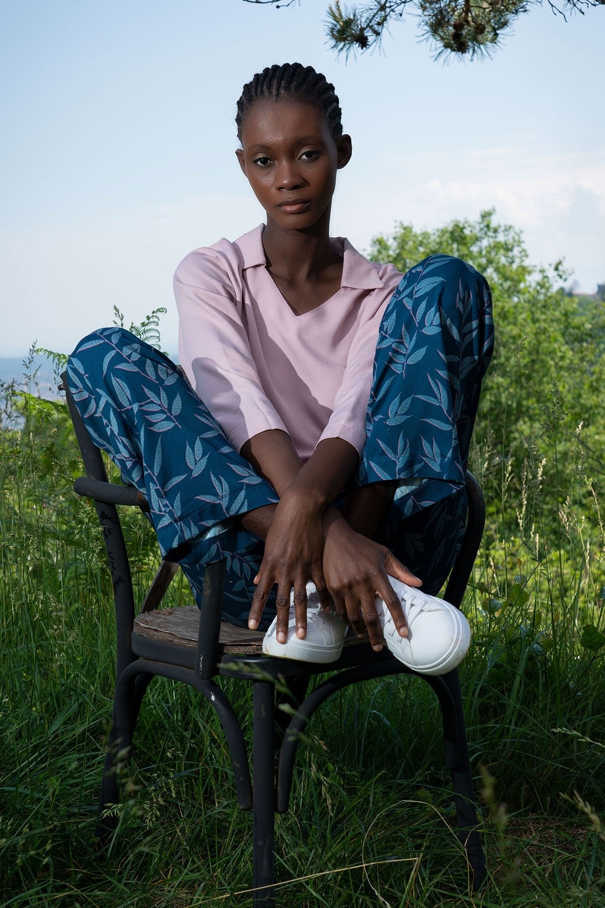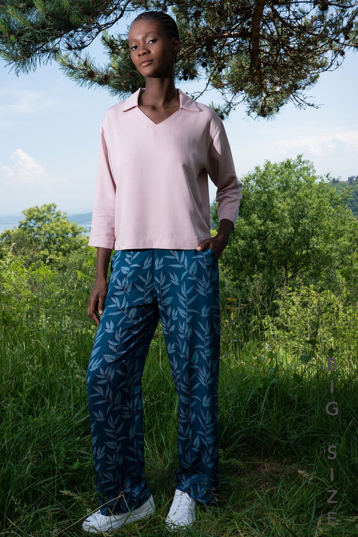 WOMEN'S VISCOSE XXL SHIRT, V-NECK, 7/8-SLEEVE, POCKETED TROUSER SET