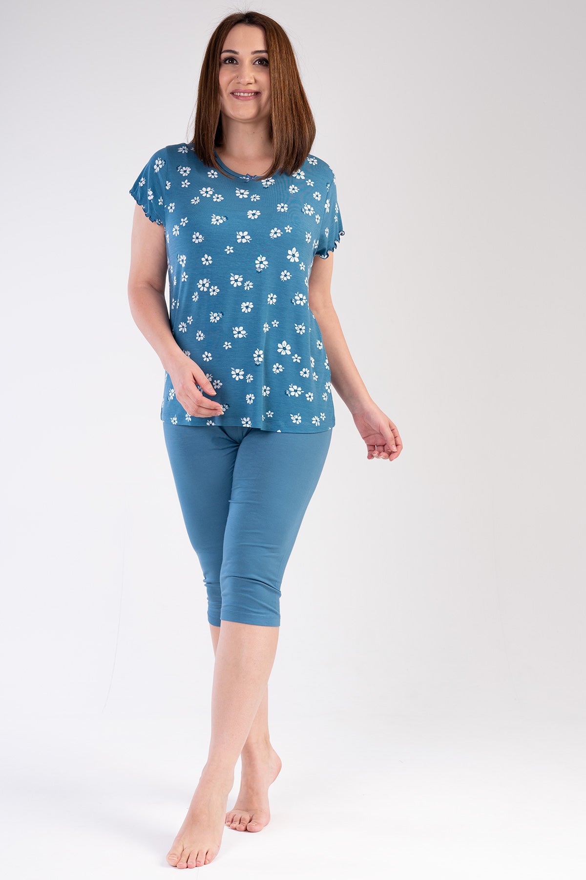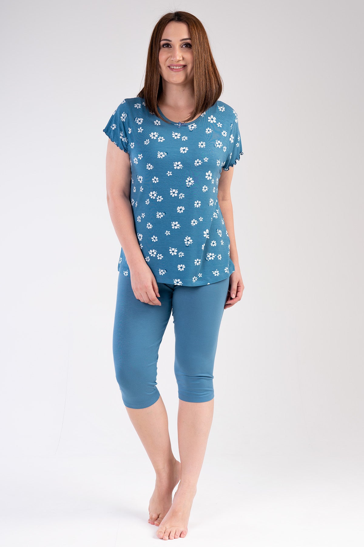 WOMEN'S VISCON XXL BATCH NECK BEAUTIFUL SHORT SLEEVE SKIRT OVAL CAPRI SUIT