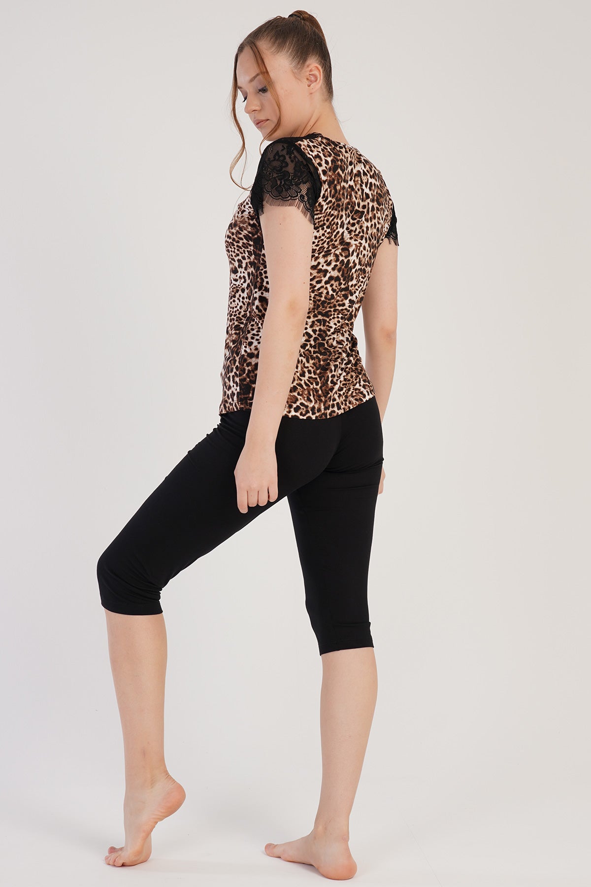 WOMEN'S VISCON SHORT SLEEVE LACE CAPRI SUIT