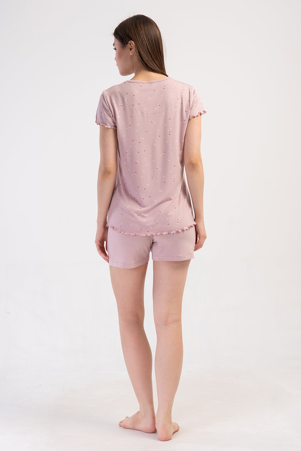 WOMEN'S LYC VISCON XXL BATCH NECK BOWOW SHORT SLEEVE BIBILLED SKIRT OVAL SORTS SUIT