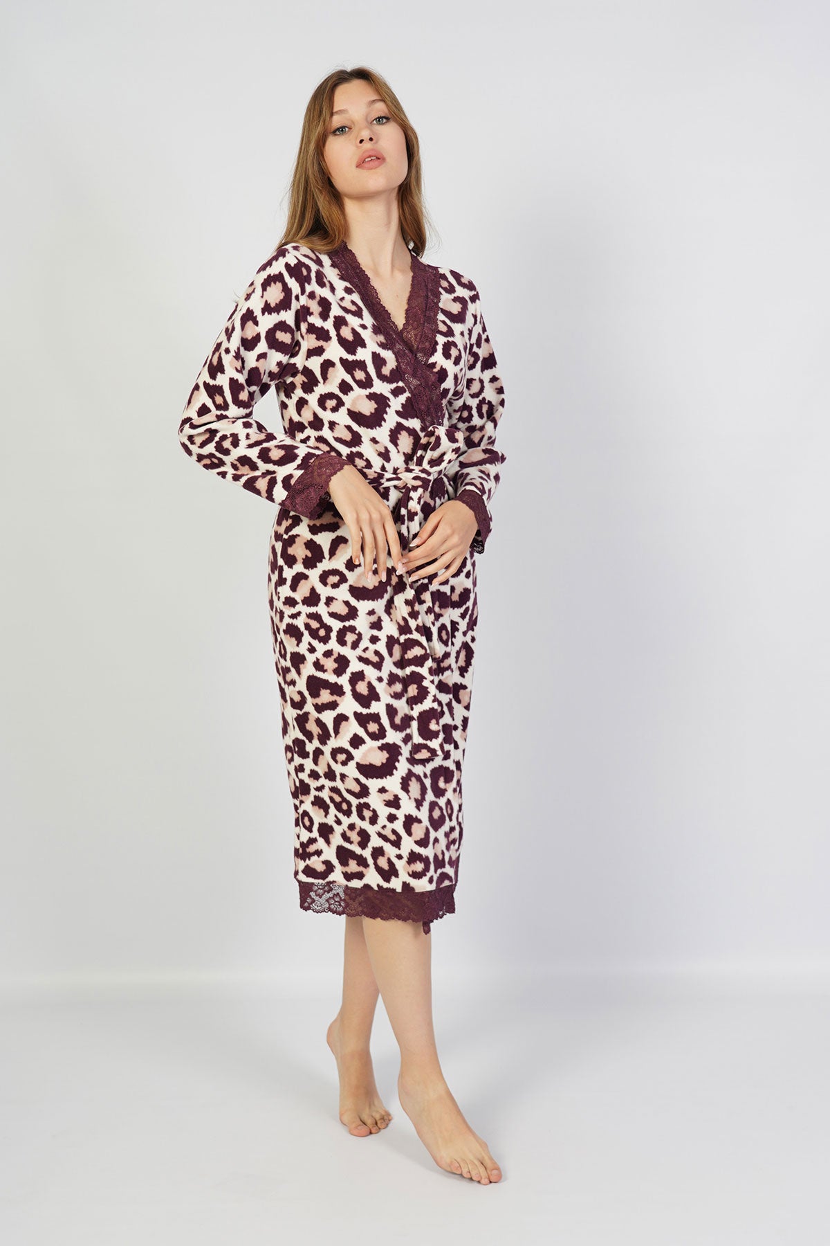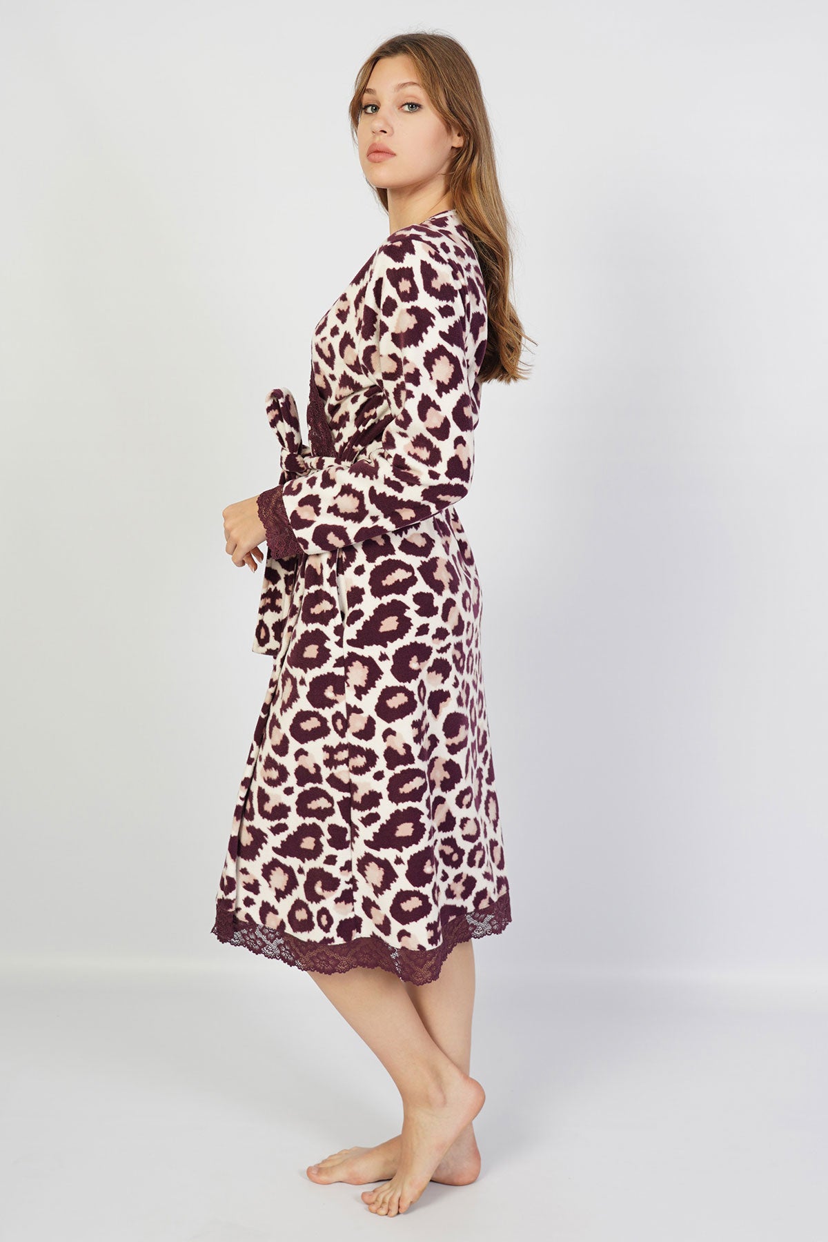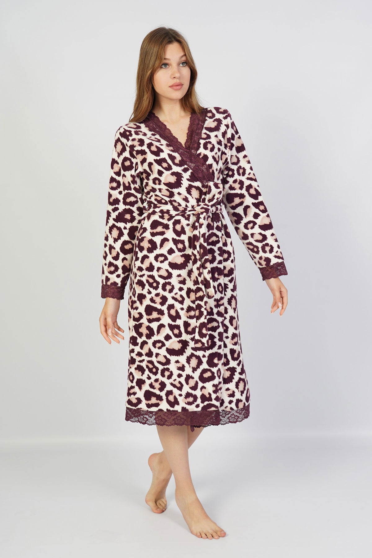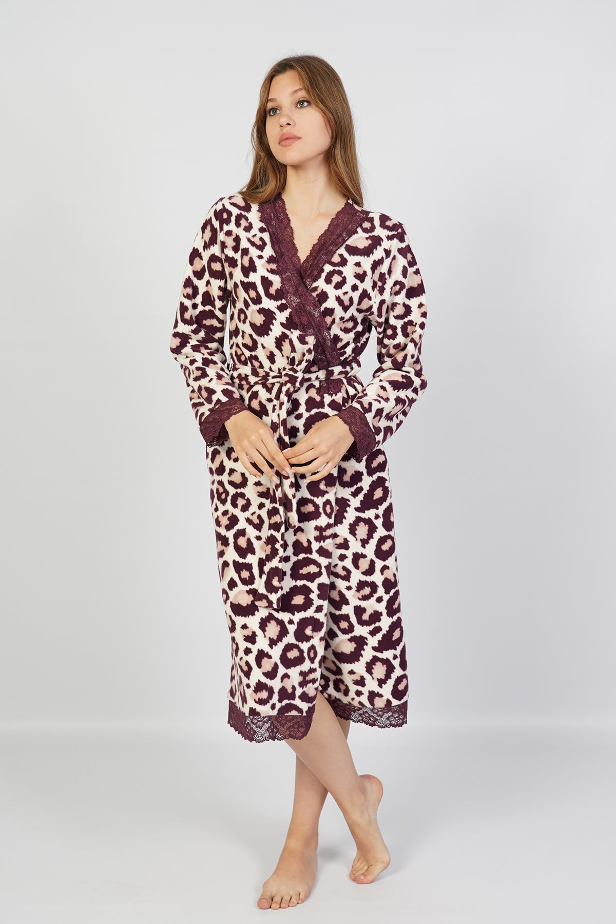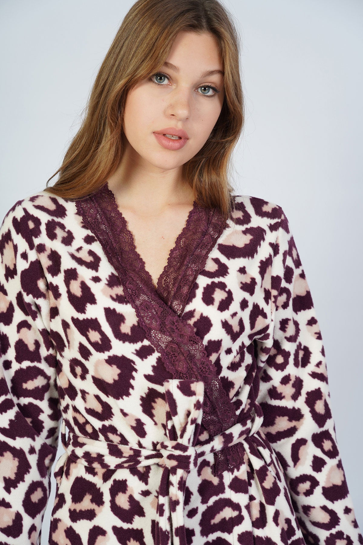 WOMEN'S FLEECE LONG-SLEEVE LACE ROBE WITH POCKETS