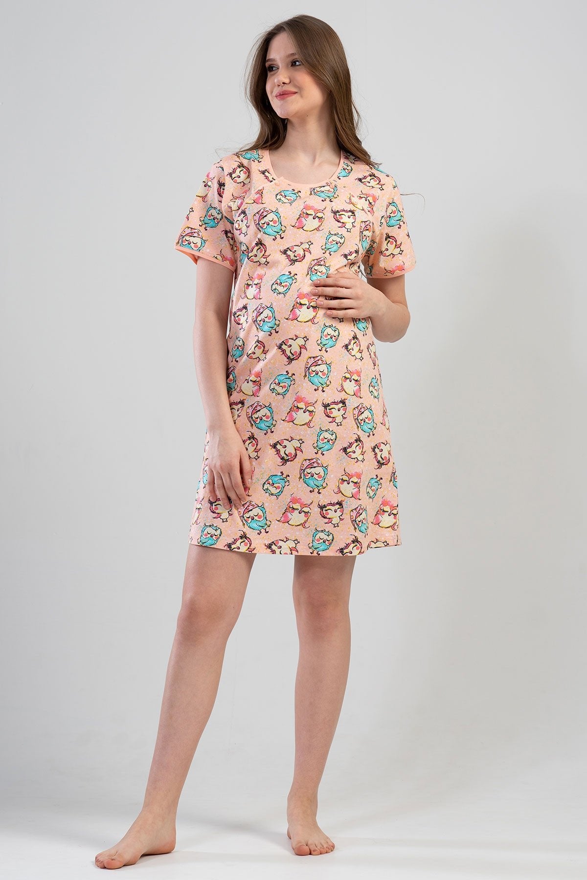 WOMEN'S P.SUPREM DOUBLE BUTTON SHORT SLEEVE SKIRT OVAL MATERNITY TUNIC