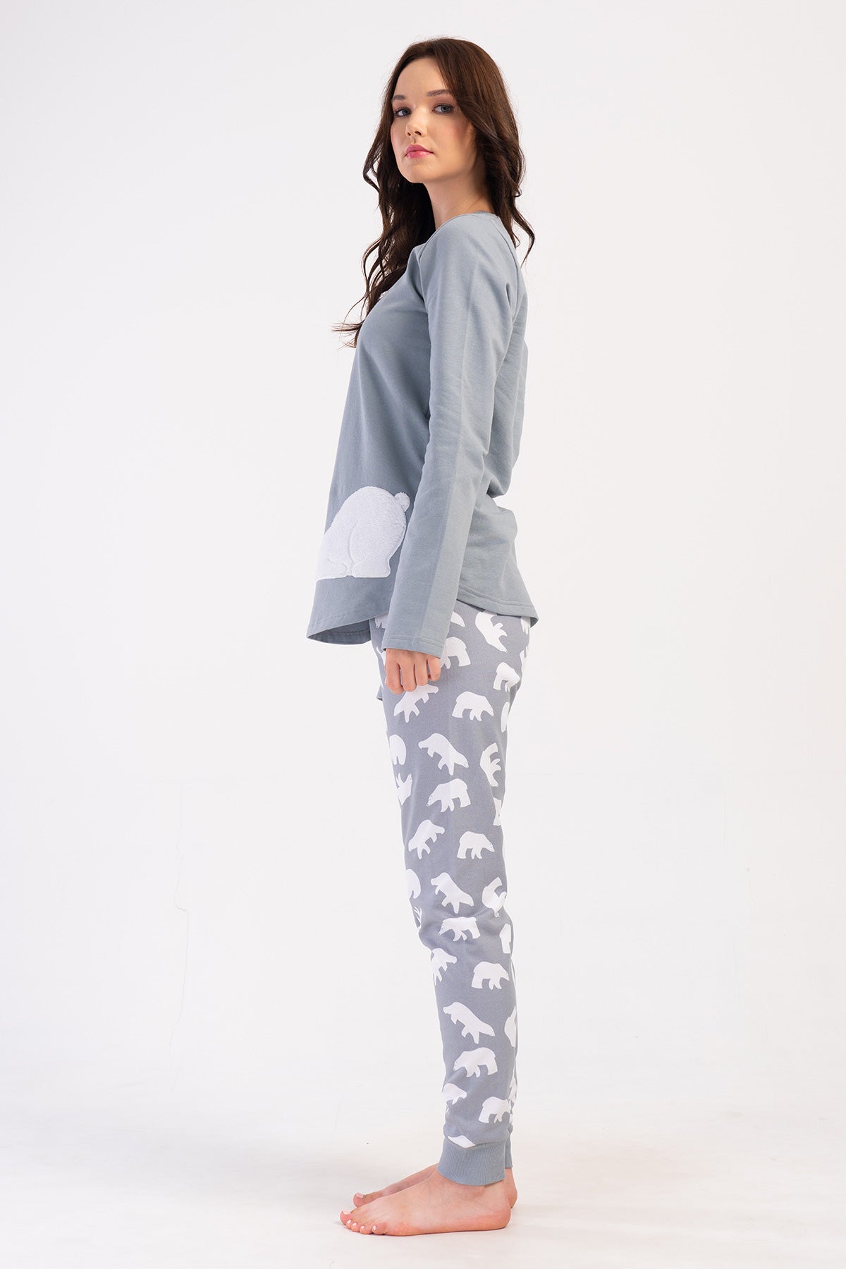 WOMEN'S 2THREAD O-NECK LONG SLEEVE SKIRT OVAL Cuffed Pajama Set