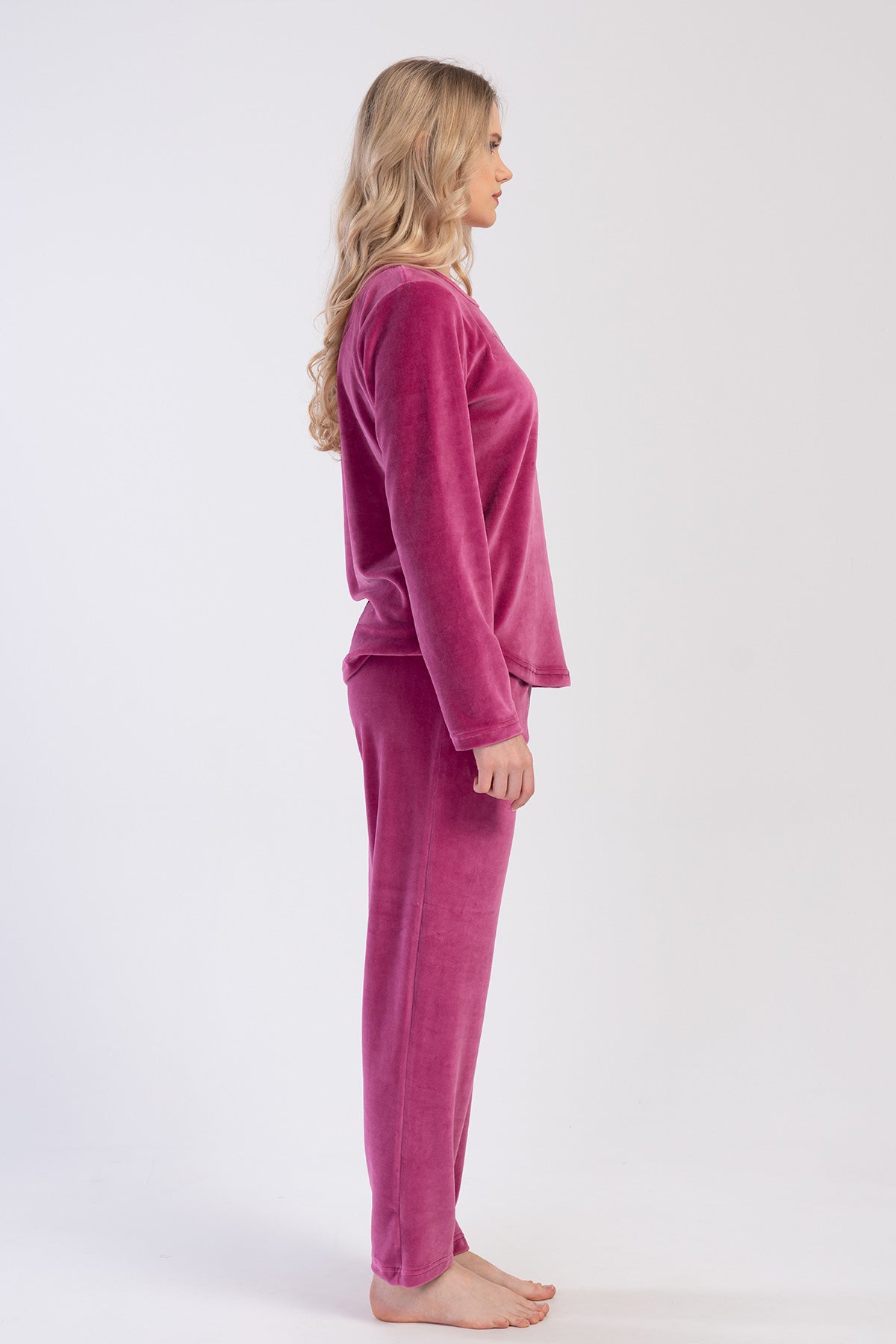 WOMEN'S VELVET XXL O-NECK LONG SLEEVE SKIRT WITH OVAL POCKET PAJAMA SET