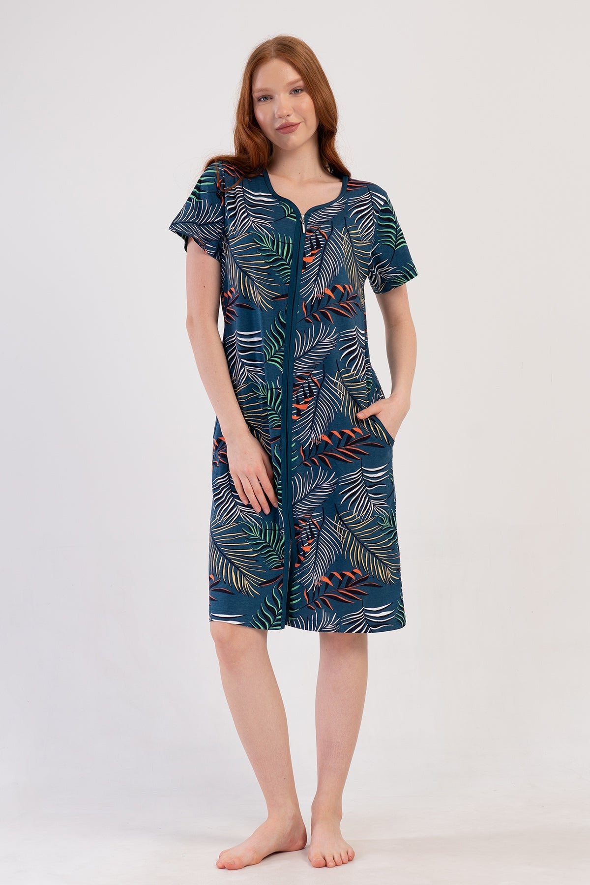 WOMEN'S P.SUPREM SHORT-SLEEVE ZIP-UP POCKET HOME DRESS