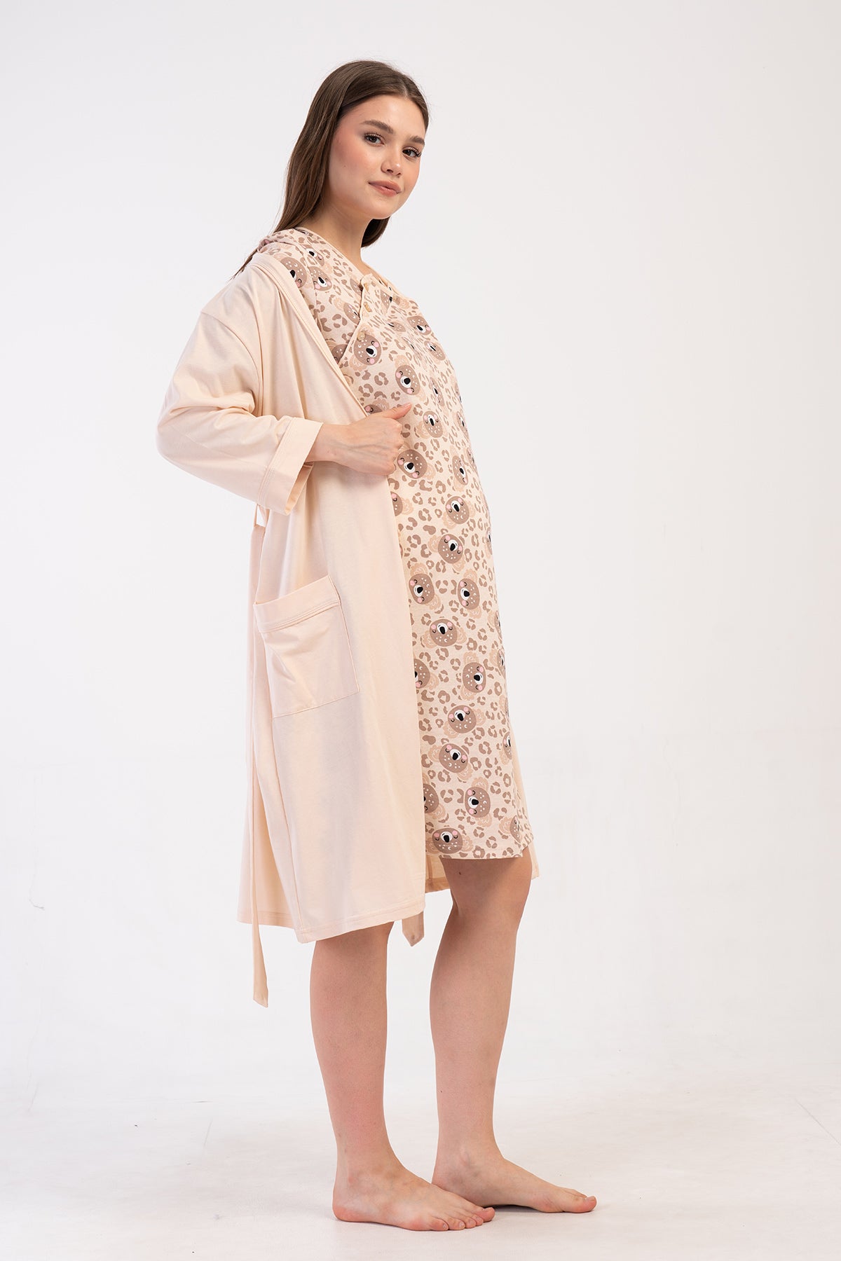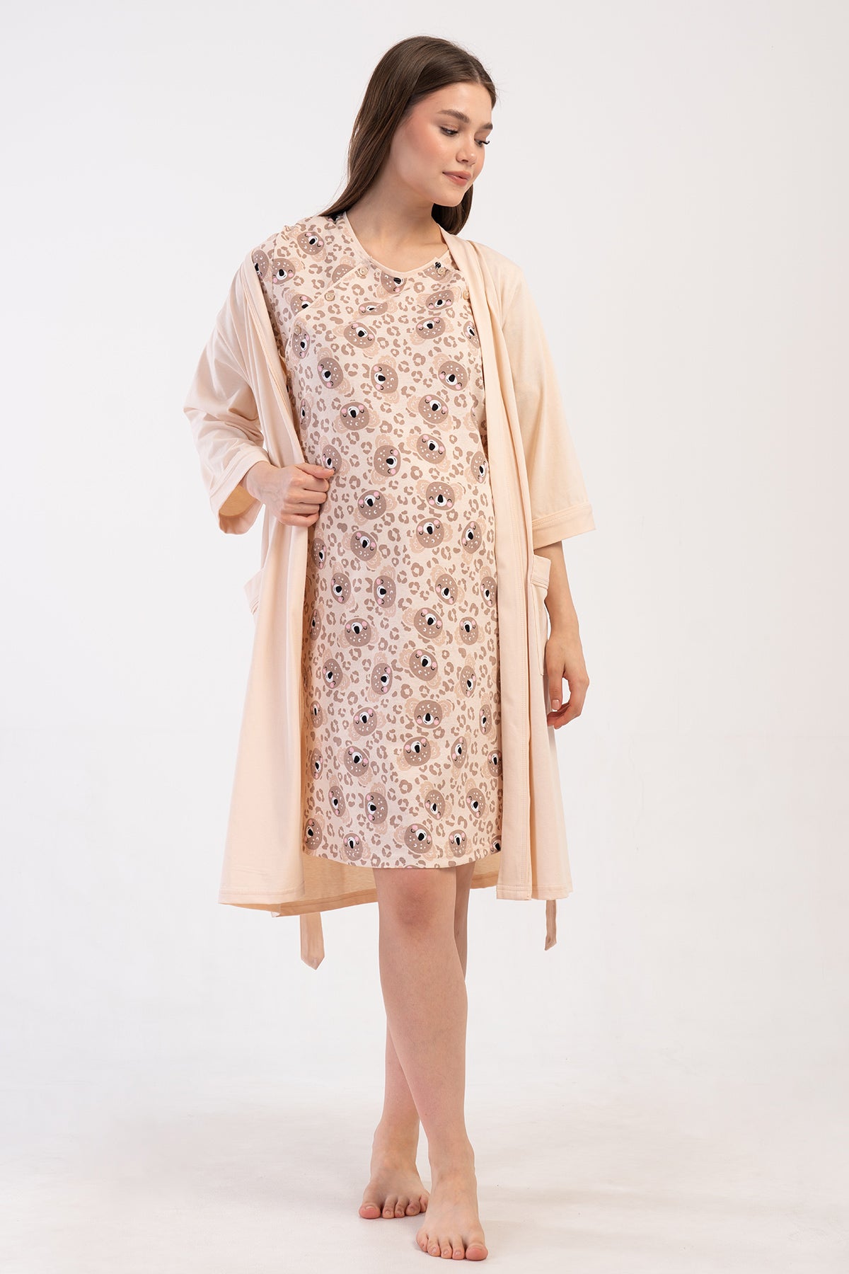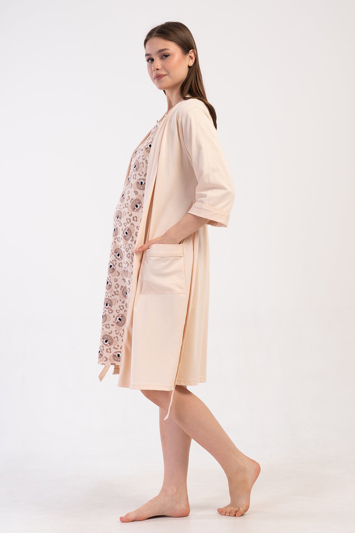 WOMEN'S P.SUPREM DOUBLE-PLEATED SHORT-SLEEVE MATERNITY TUNIC + 3/4 SLEEVE POCKET ROBE SET