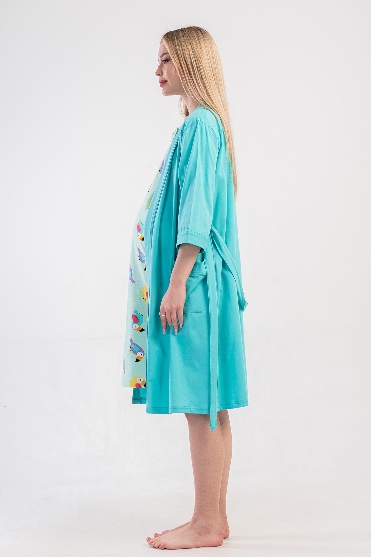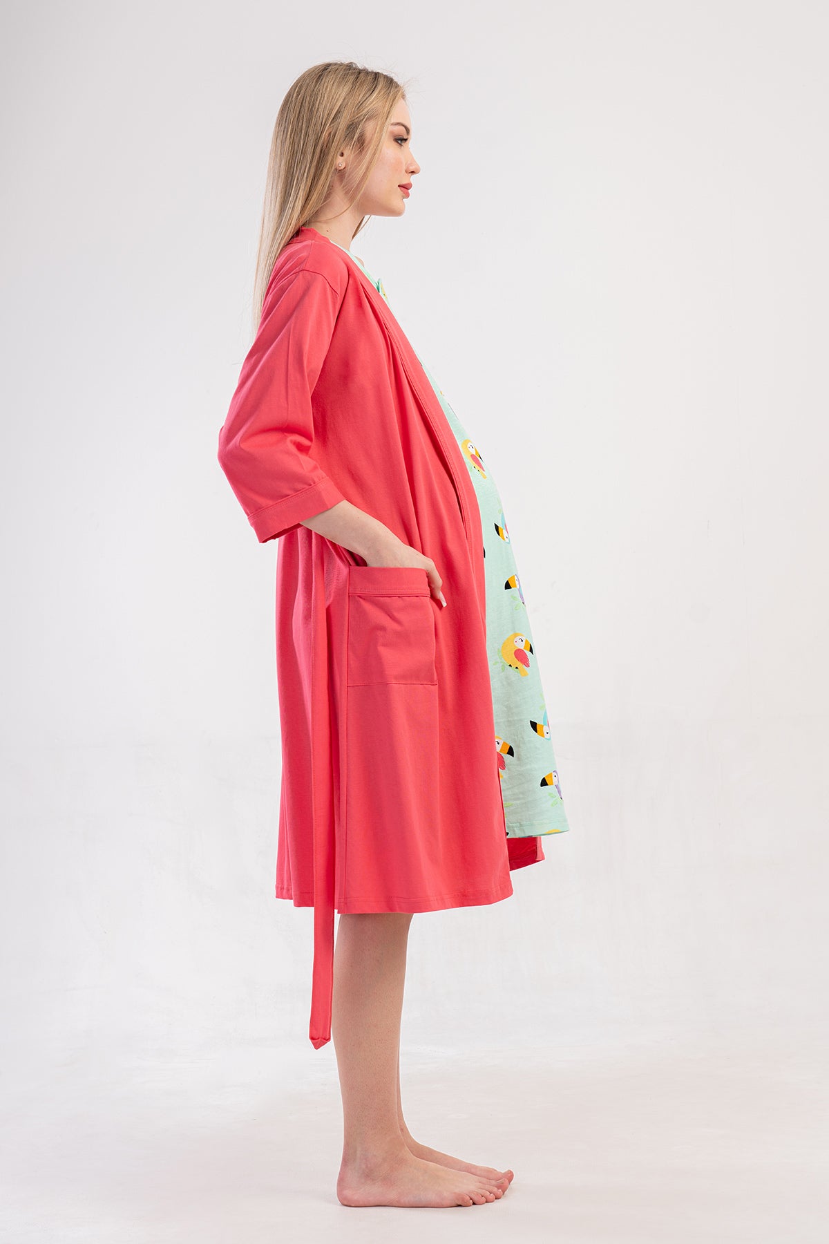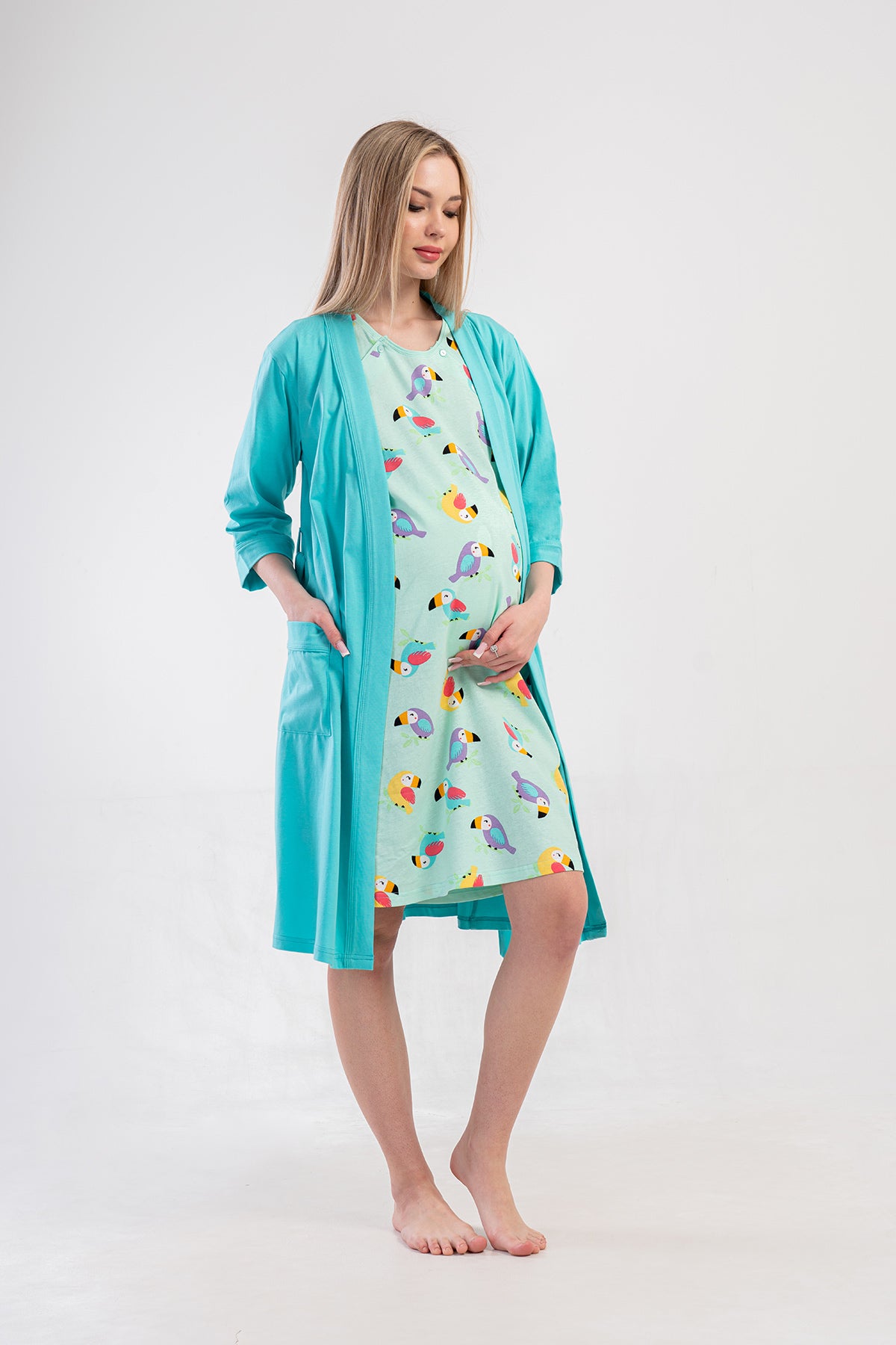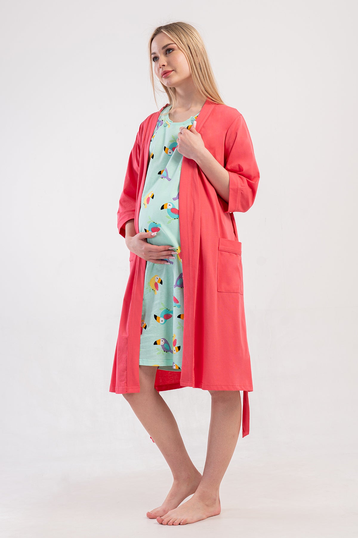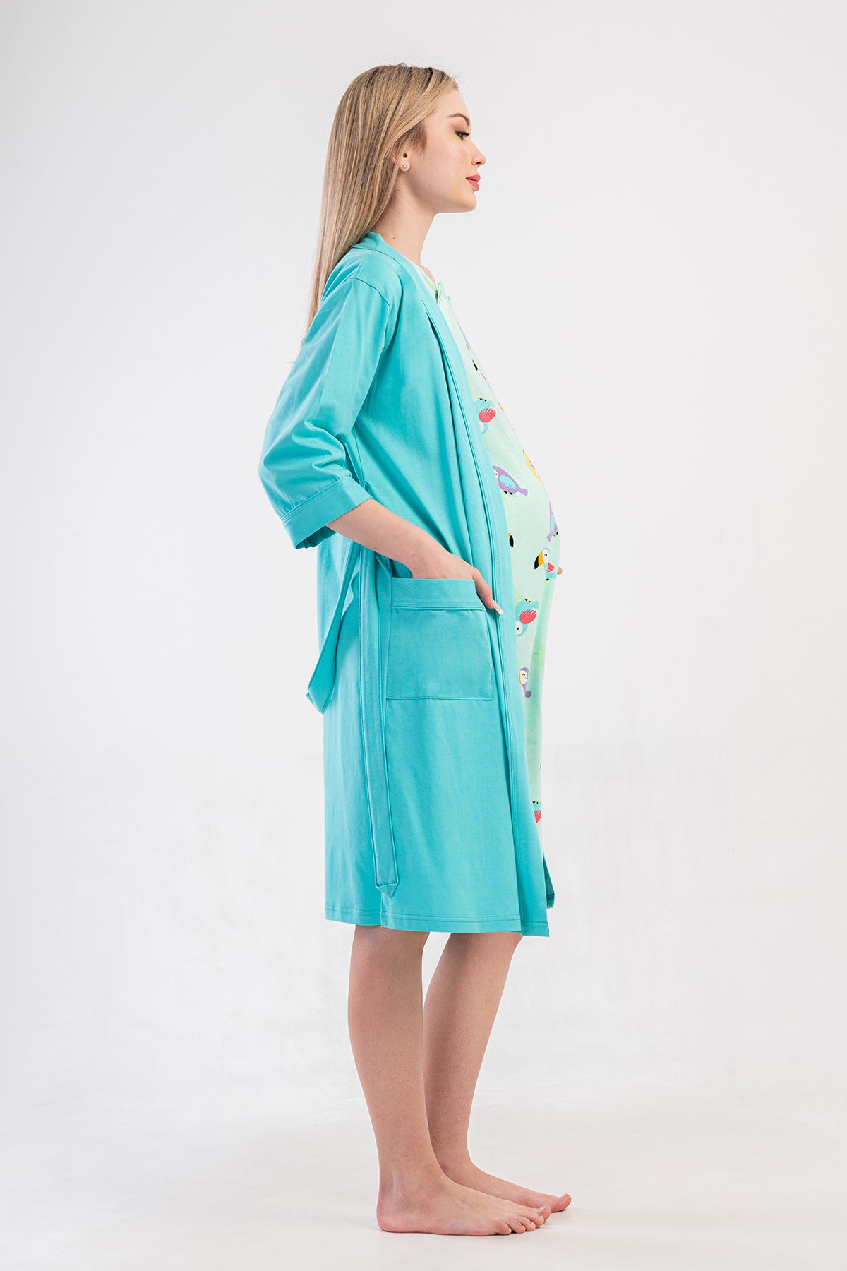 WOMEN'S P.SUPREM DOUBLE-PLEATED SHORT-SLEEVE MATERNITY TUNIC + 3/4 SLEEVE POCKET ROBE SET
