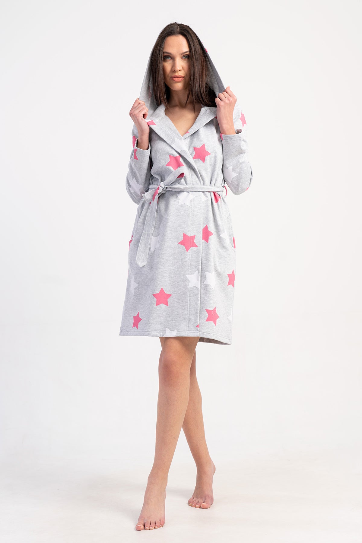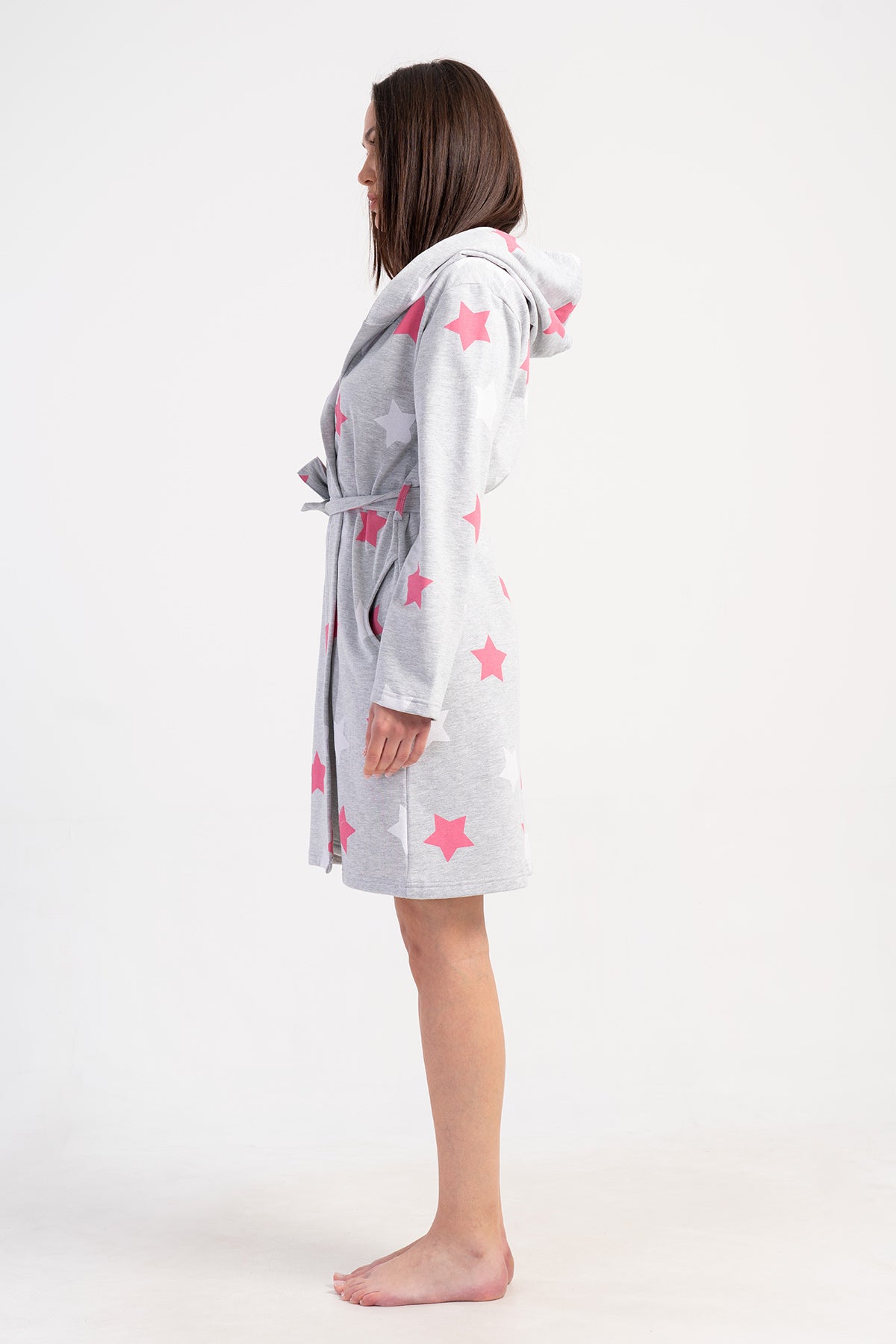 WOMEN'S 2-THREAD HOODED LONG-SLEEVE SHORT-SLEEVED ROBE WITH POCKETS