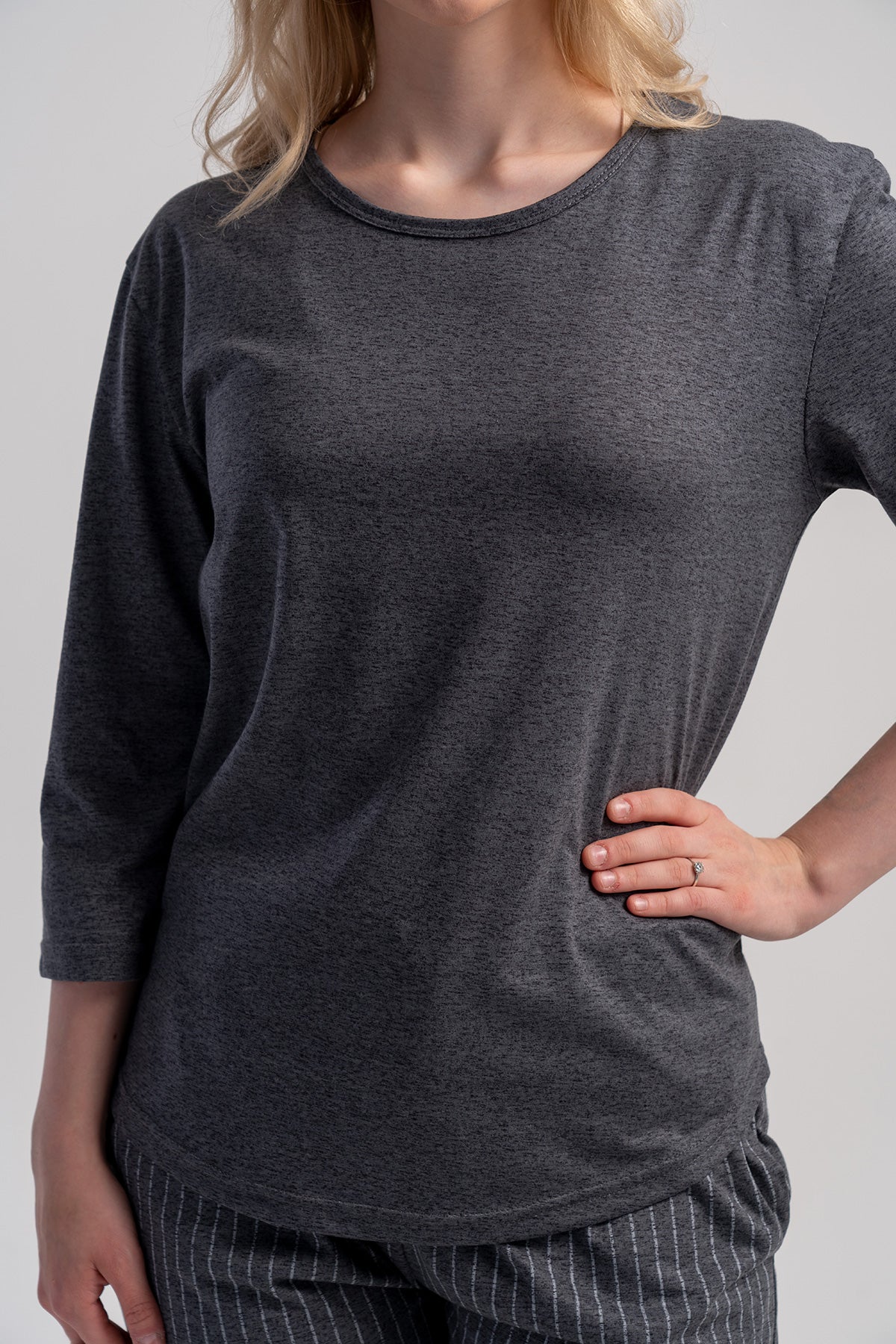 WOMEN'S P.SUPREM COLLAR, 3/4 SLEEVE, POCKETED, 7/8 SIZE PAJAMA SET