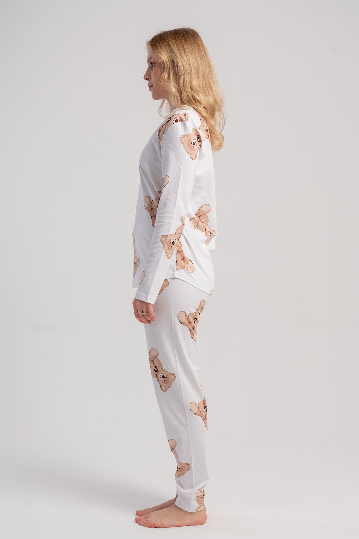 WOMEN'S P.SUPREM O-NECK LONG SLEEVE SKIRT OVAL Cuffed Pajama Set