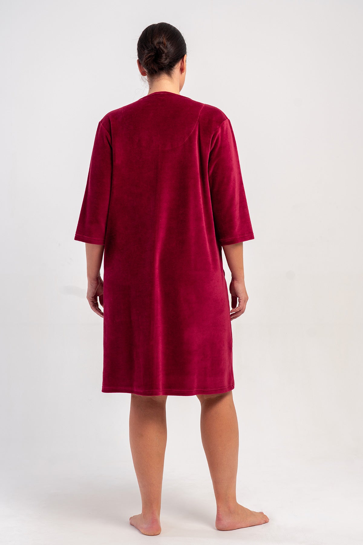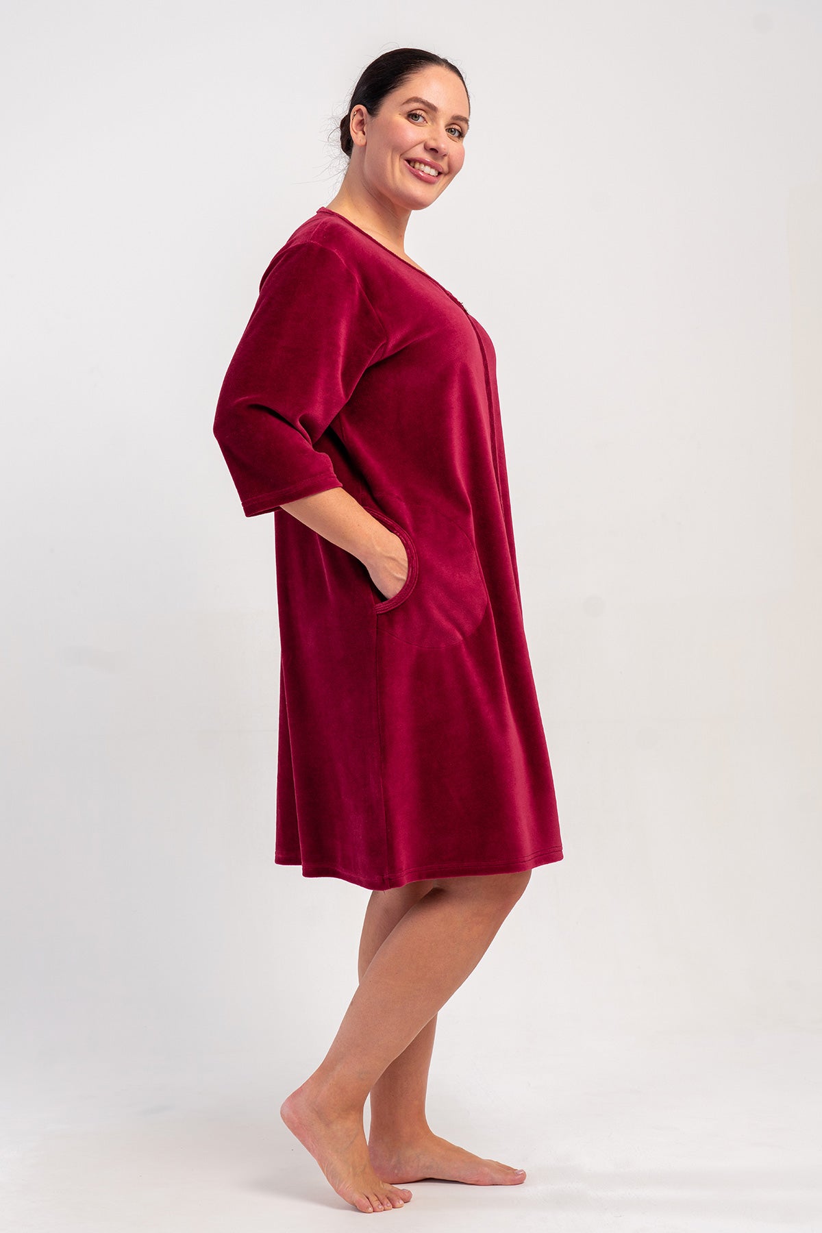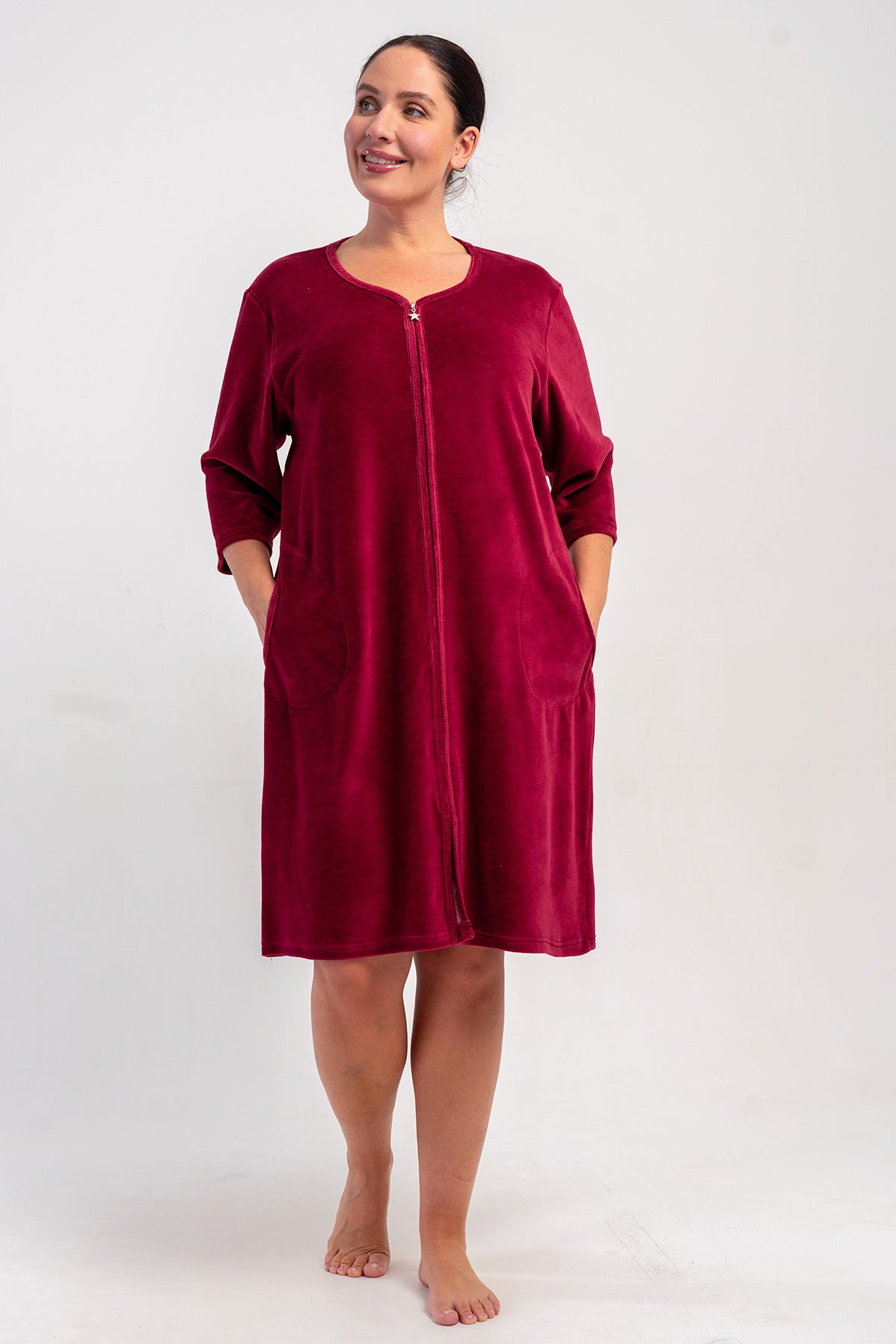WOMEN'S COTTON VELVET XXL 3/4 SLEEVE POCKETED ZIPPERED HOME DRESS