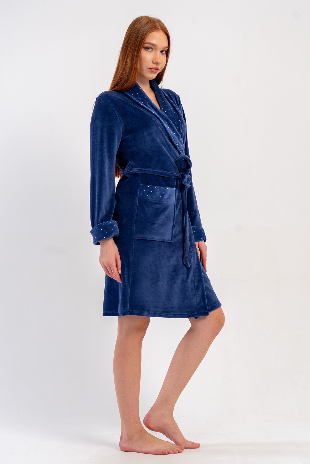 WOMEN'S COTTON VELVET LONG-SLEEVE POCKETED SHAWL ROBE