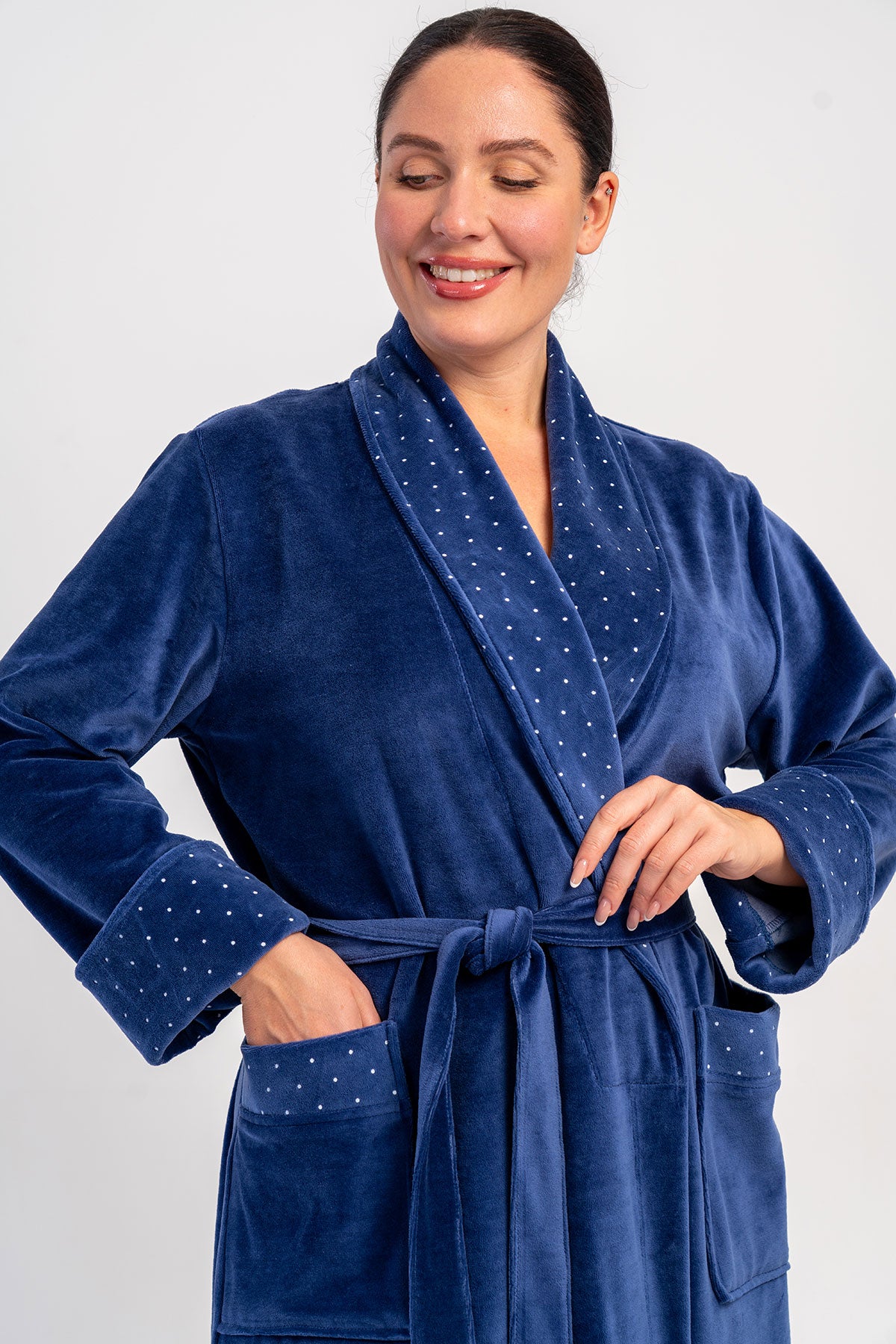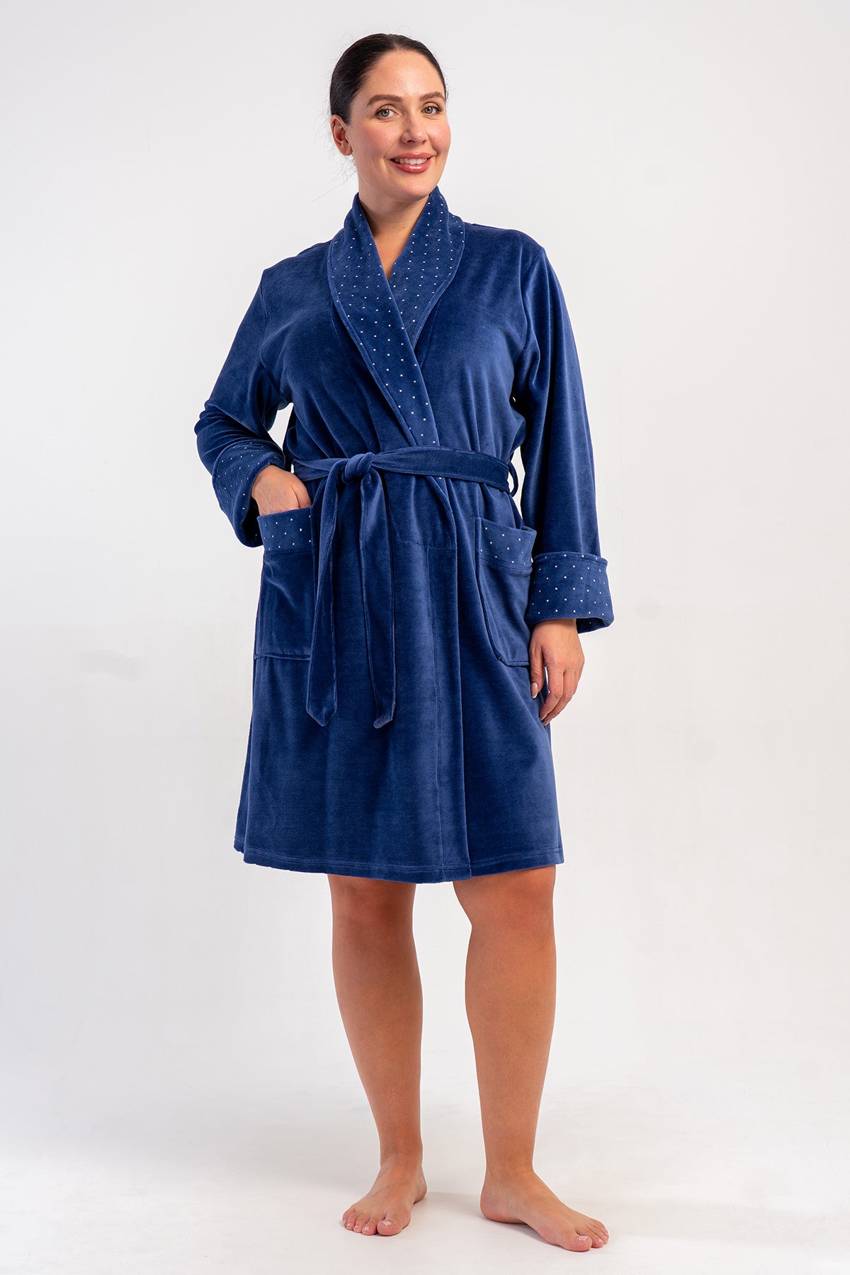 Women's Cotton Velvet XXL Long Sleeve Pocketed Shawl Collar Robe
