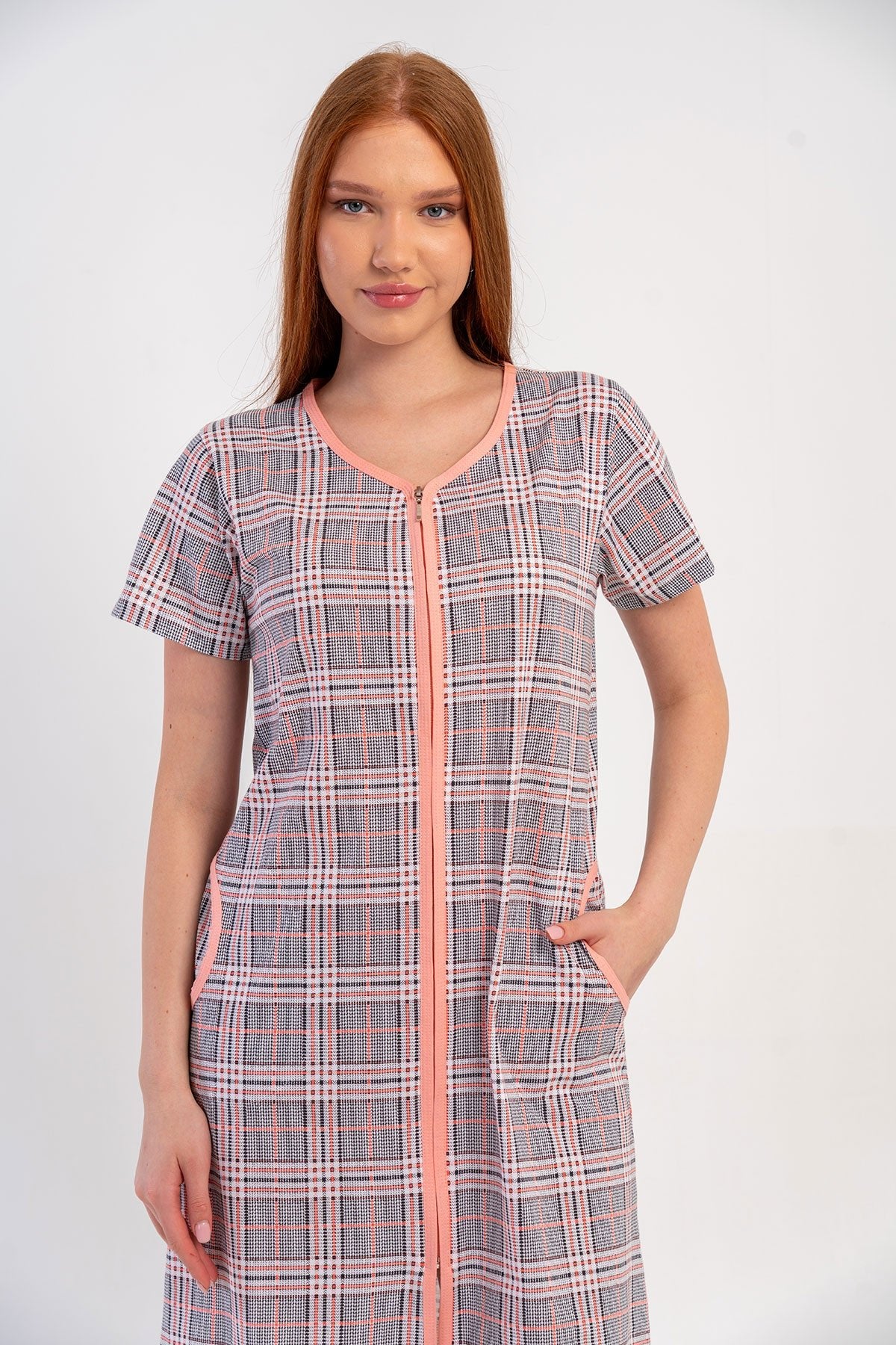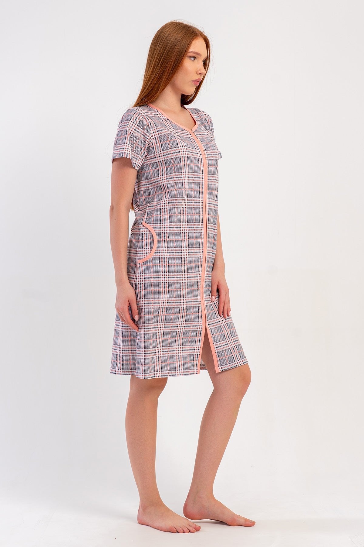 WOMEN'S P.SUPREM SHORT-SLEEVE ZIP-UP POCKET HOME DRESS