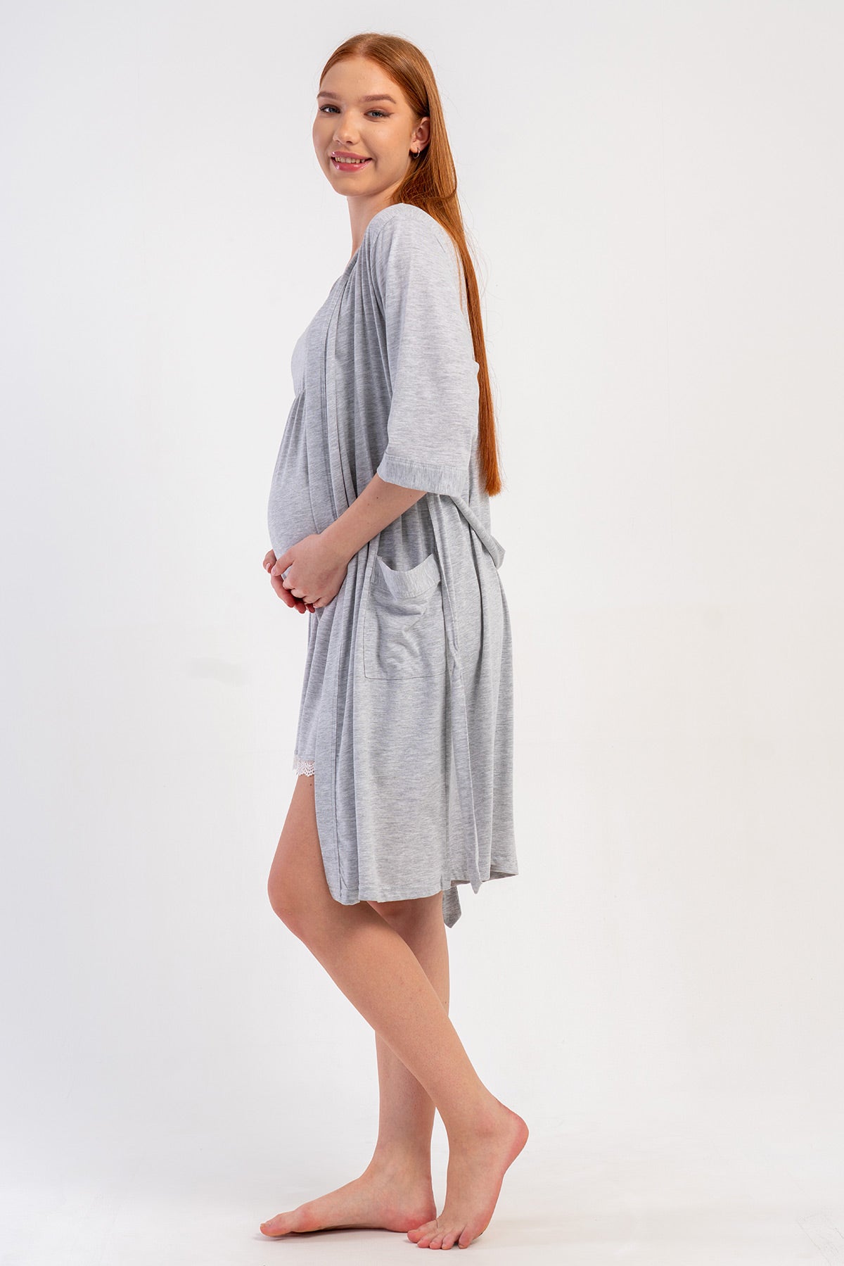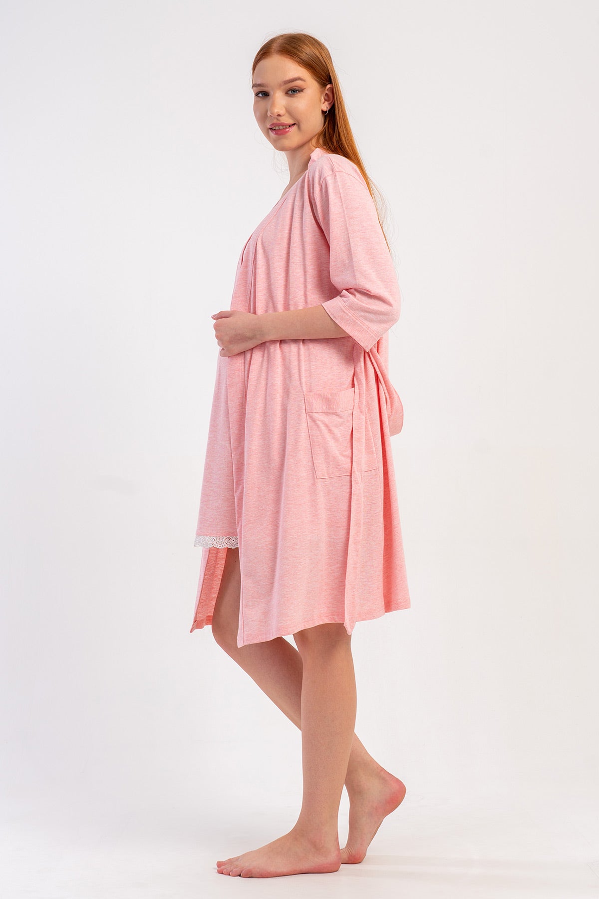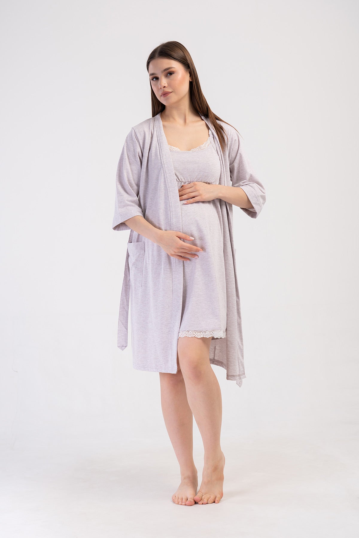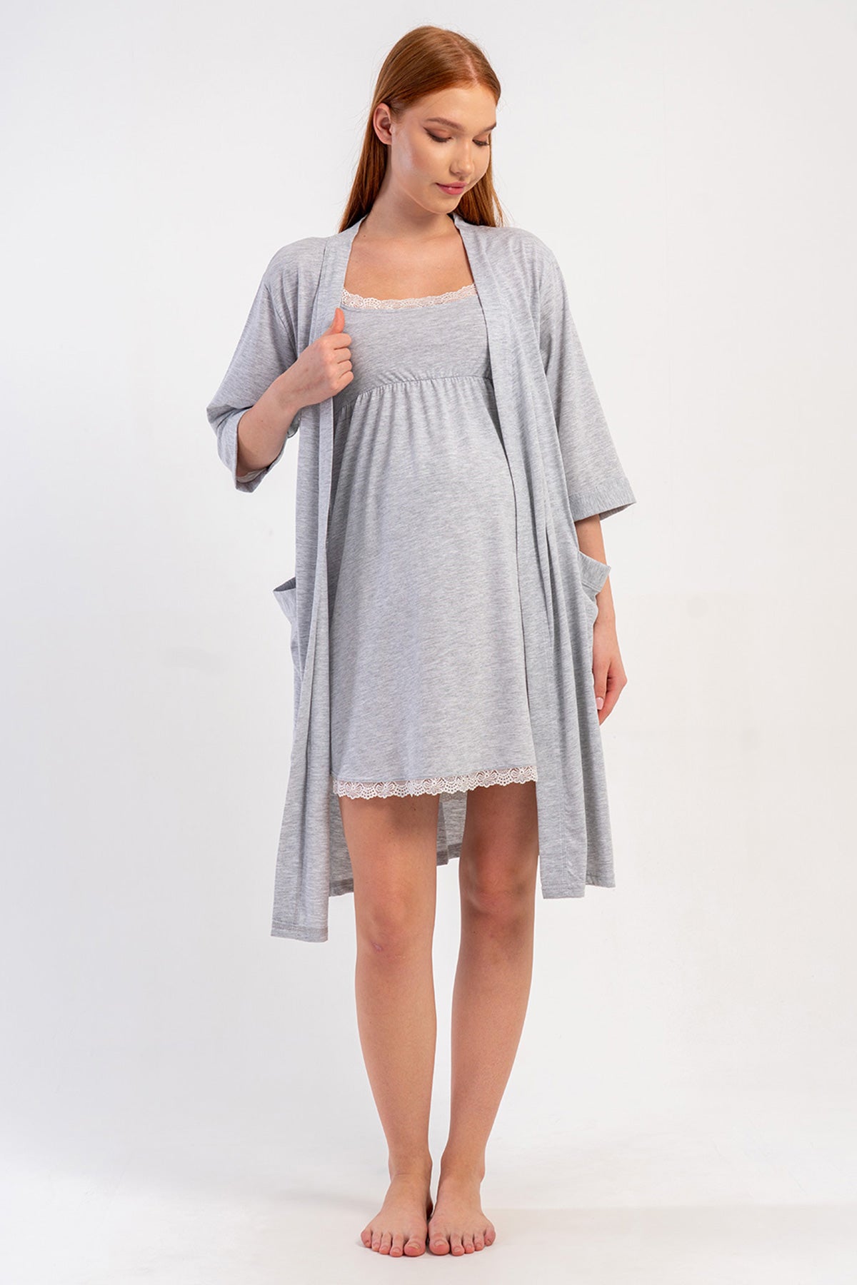 WOMEN'S P.SUPREM STRAPLESS LACE TUNIC + 3/4 SLEEVE MATERNITY ROBE SET