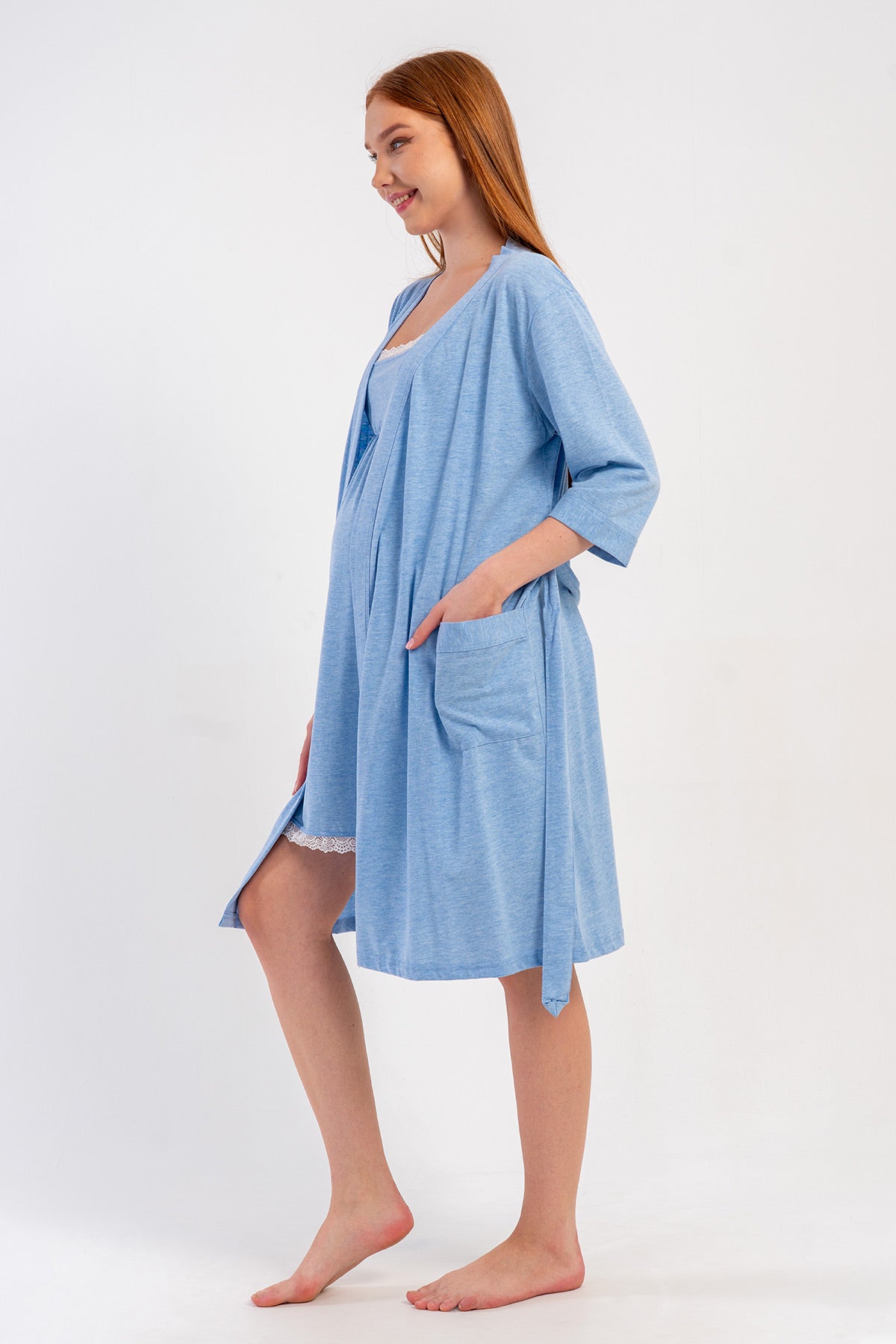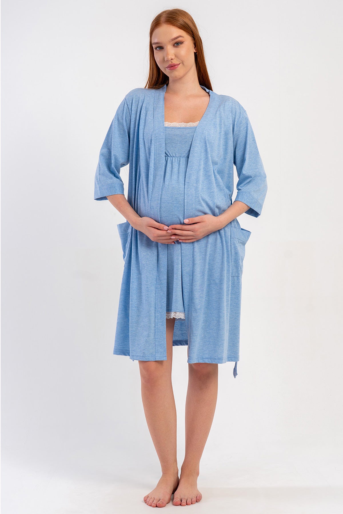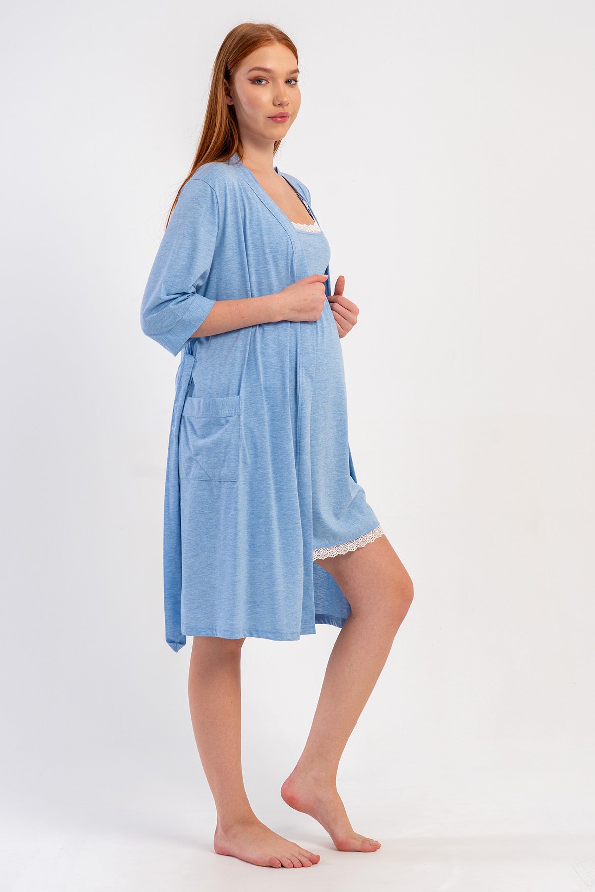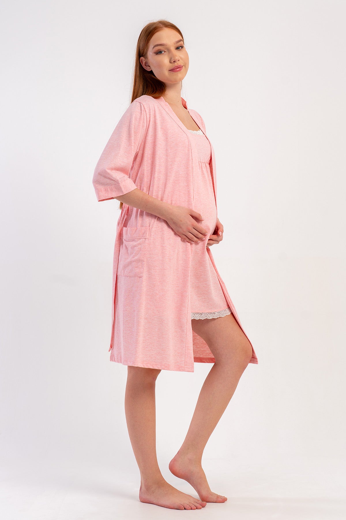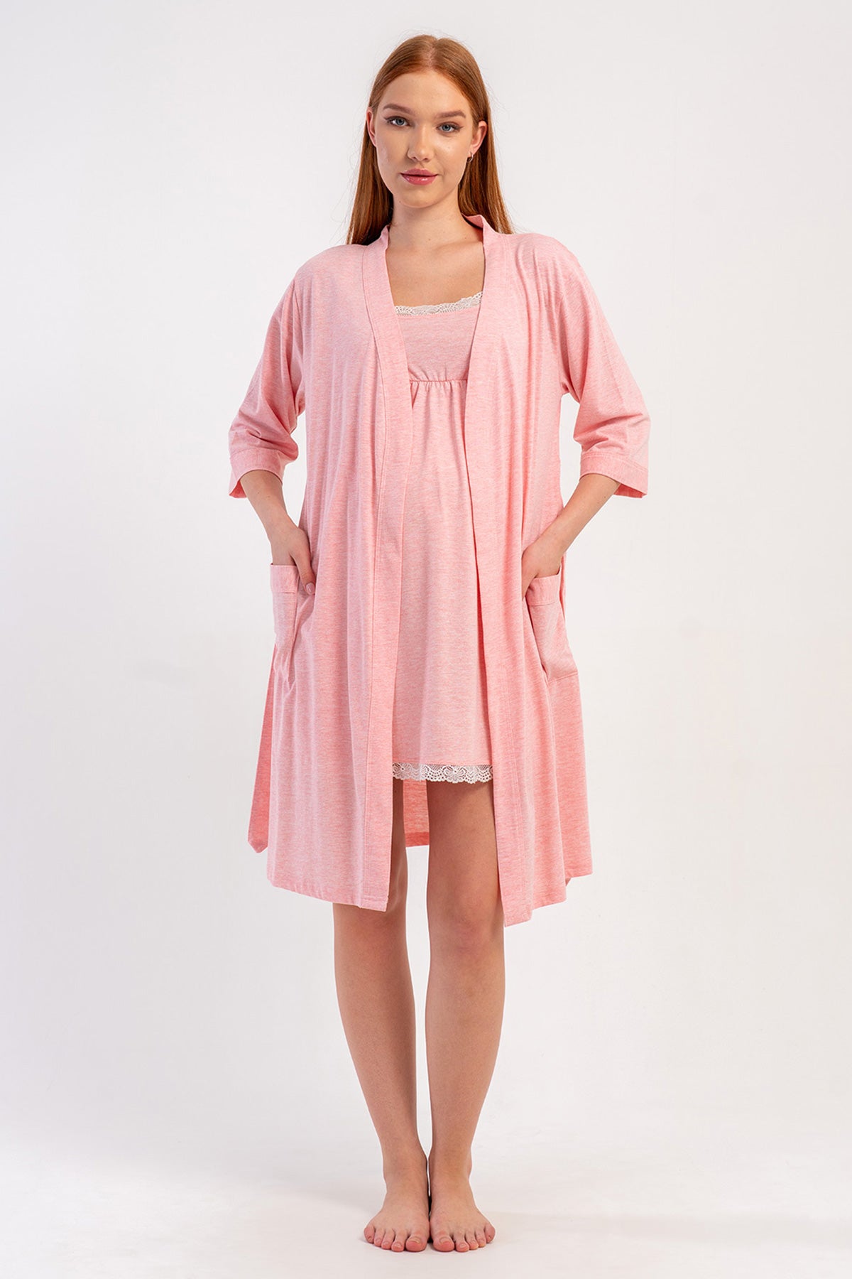 WOMEN'S P.SUPREM STRAPLESS LACE TUNIC + 3/4 SLEEVE MATERNITY ROBE SET