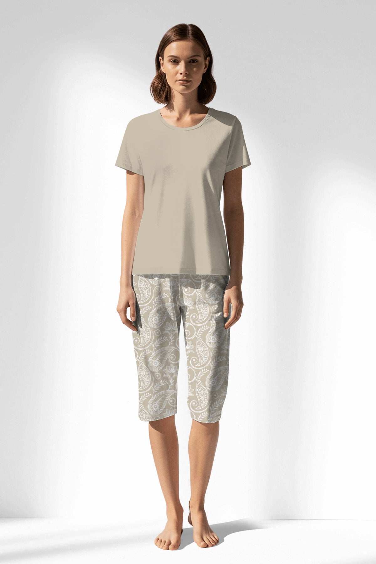 Woman Polyviscon Lunafleur Short Sleeve Capri Set