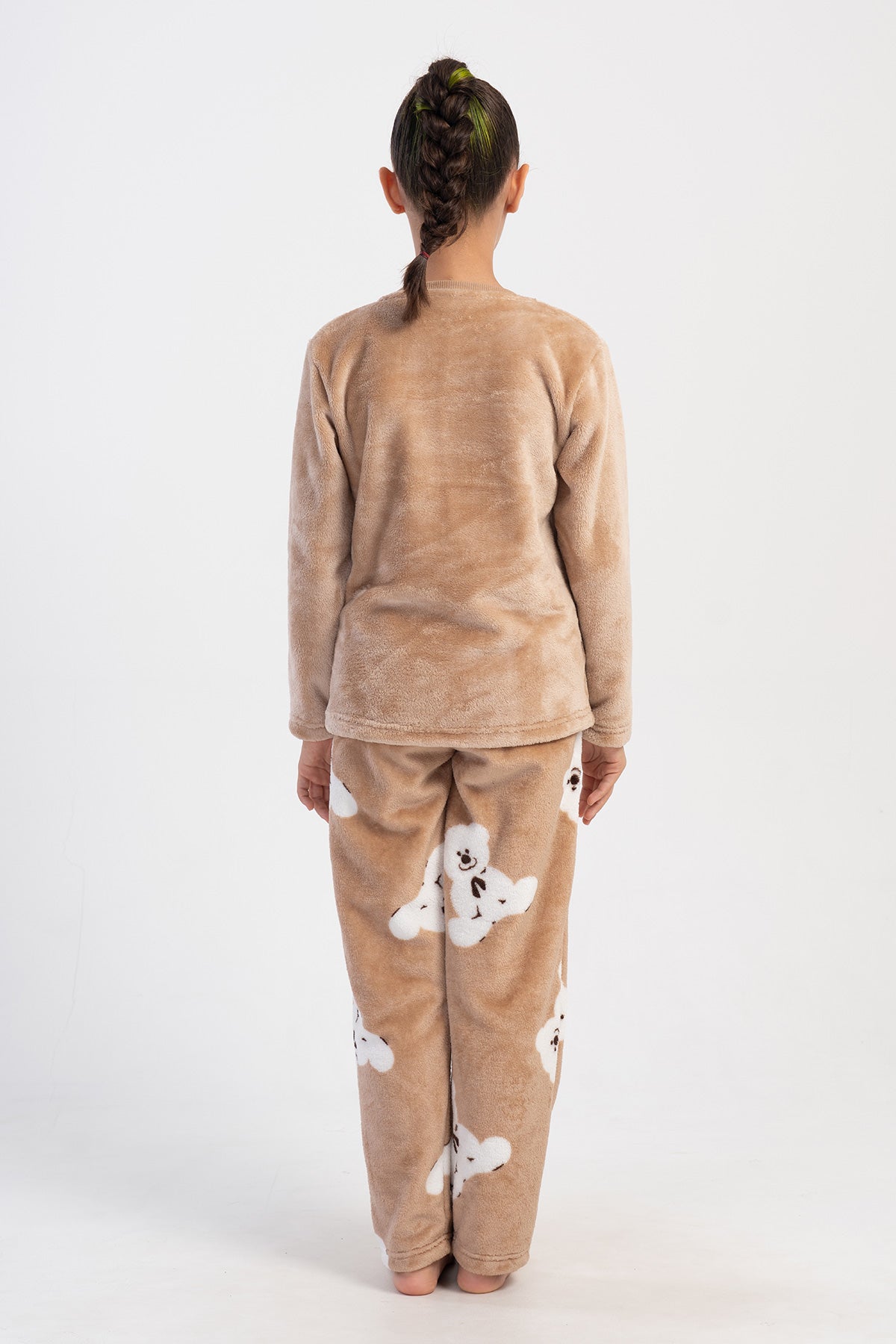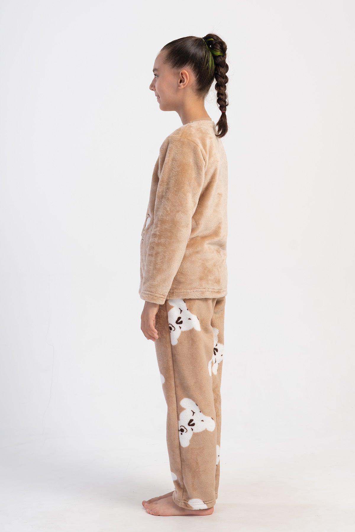• Kids' Girl Soft Beige O Neck Pocket Detail Pyjama Set